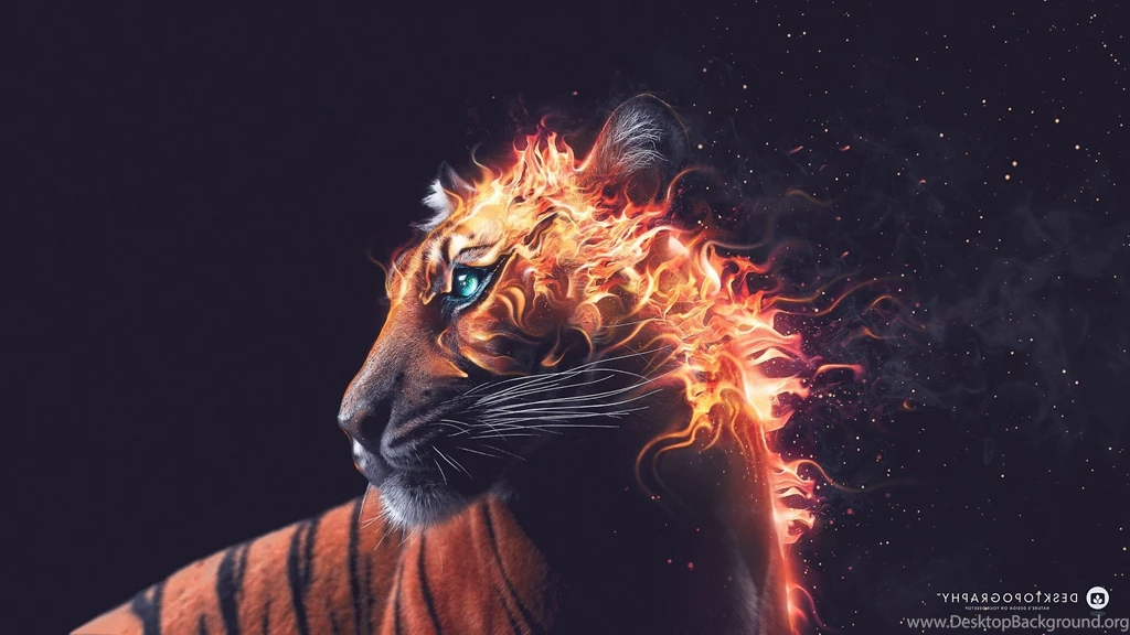 Desktopography, Fire, Artwork, Animals, Digital Art, Tiger ... Desktop Background