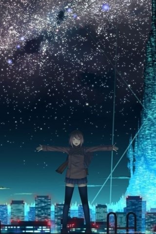 Description: Download 1366x768 Anime, City, Lights, Girl, Roof, The Sky, Night ... Desktop Background Desktop Background from the above display resolutions for Standart 4:3, Widescreen 16:9, Netbook, Tablet, Playbook, PlayStation, Android HD , iPhone, iPhone 3G, iPhone 3GS. If you want, you can download Original resolution which may fits perfect to your screen.