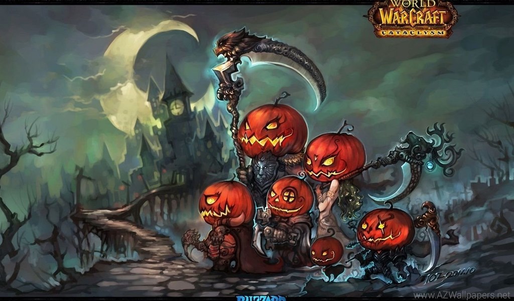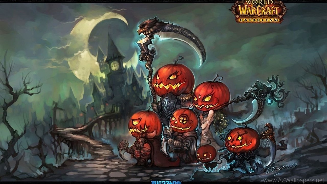Description: Download 1366x768 Halloween, World Of Warcraft, Wow, Pumpkins, Cataclysm ... Desktop Background Desktop Background from the above display resolutions for Standart 4:3, Widescreen 16:9, Netbook, Tablet, Playbook, PlayStation, Android HD , iPhone, iPhone 3G, iPhone 3GS. If you want, you can download Original resolution which may fits perfect to your screen.