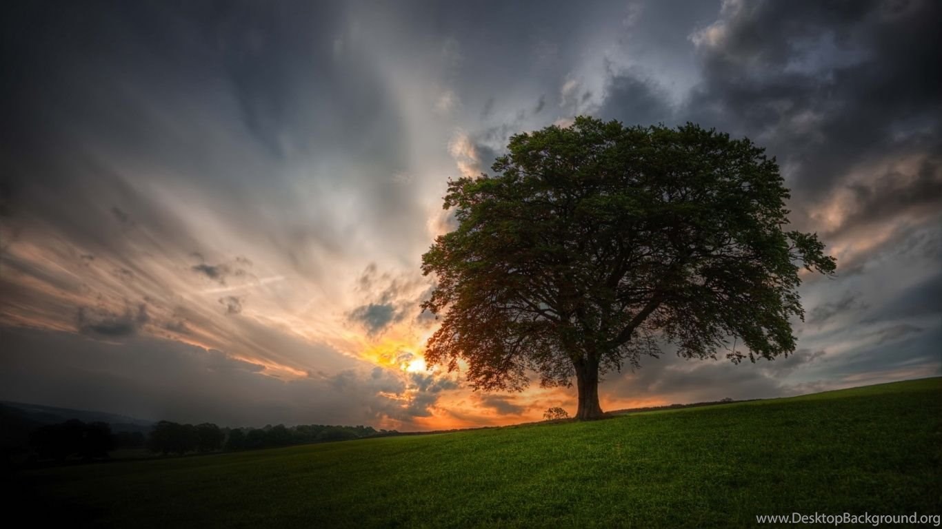 1366x768 Sundown Tree Landscape Wallpapers Desktop Background