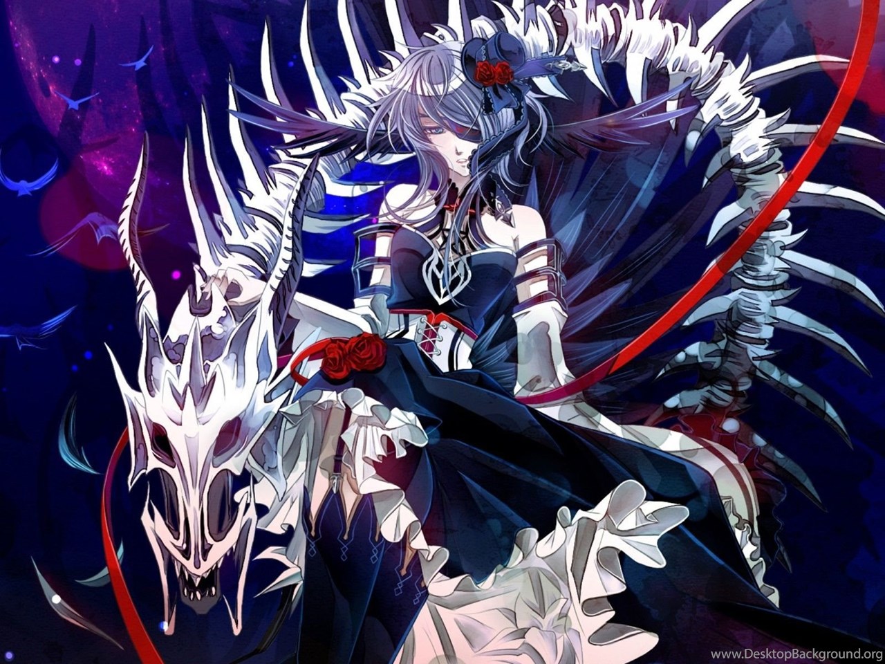 20069 Anime Girl And Dragon Skeleto.jpg Desktop Background