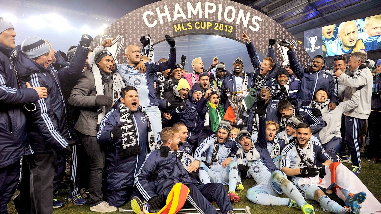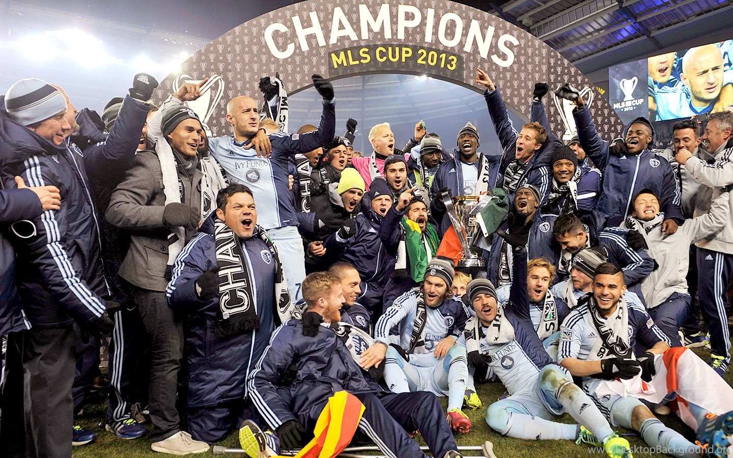 | Image Description | Dec 7, 2013; Kansas City, KS, USA; Sporting KC celebrate with the championship trophy after the 2013 MLS Cup against the Real Salt Lake at Sporting Park. Sporting KC won in a shootout. Mandatory Credit |