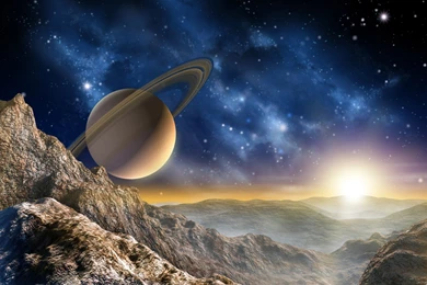 Wall Mural Wallpapers Space Planet Hill Mountain Saturn Photo 360 ...