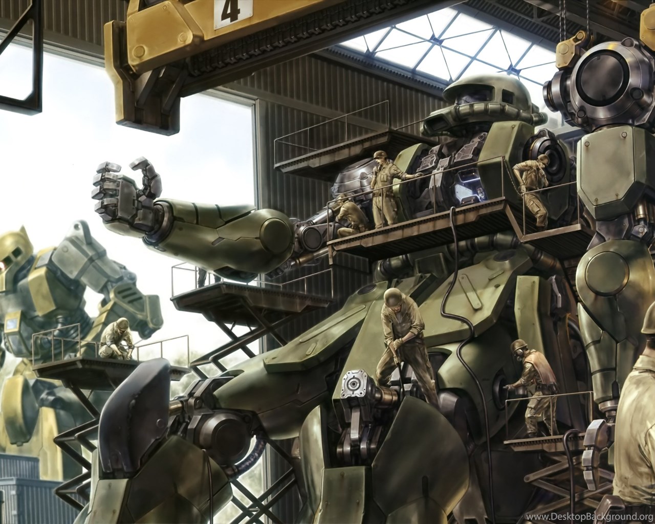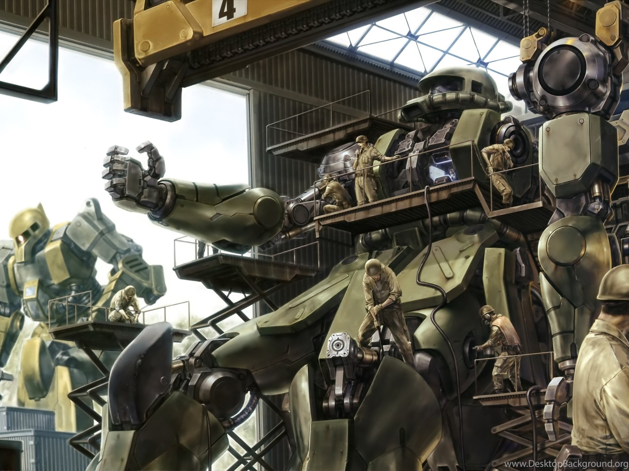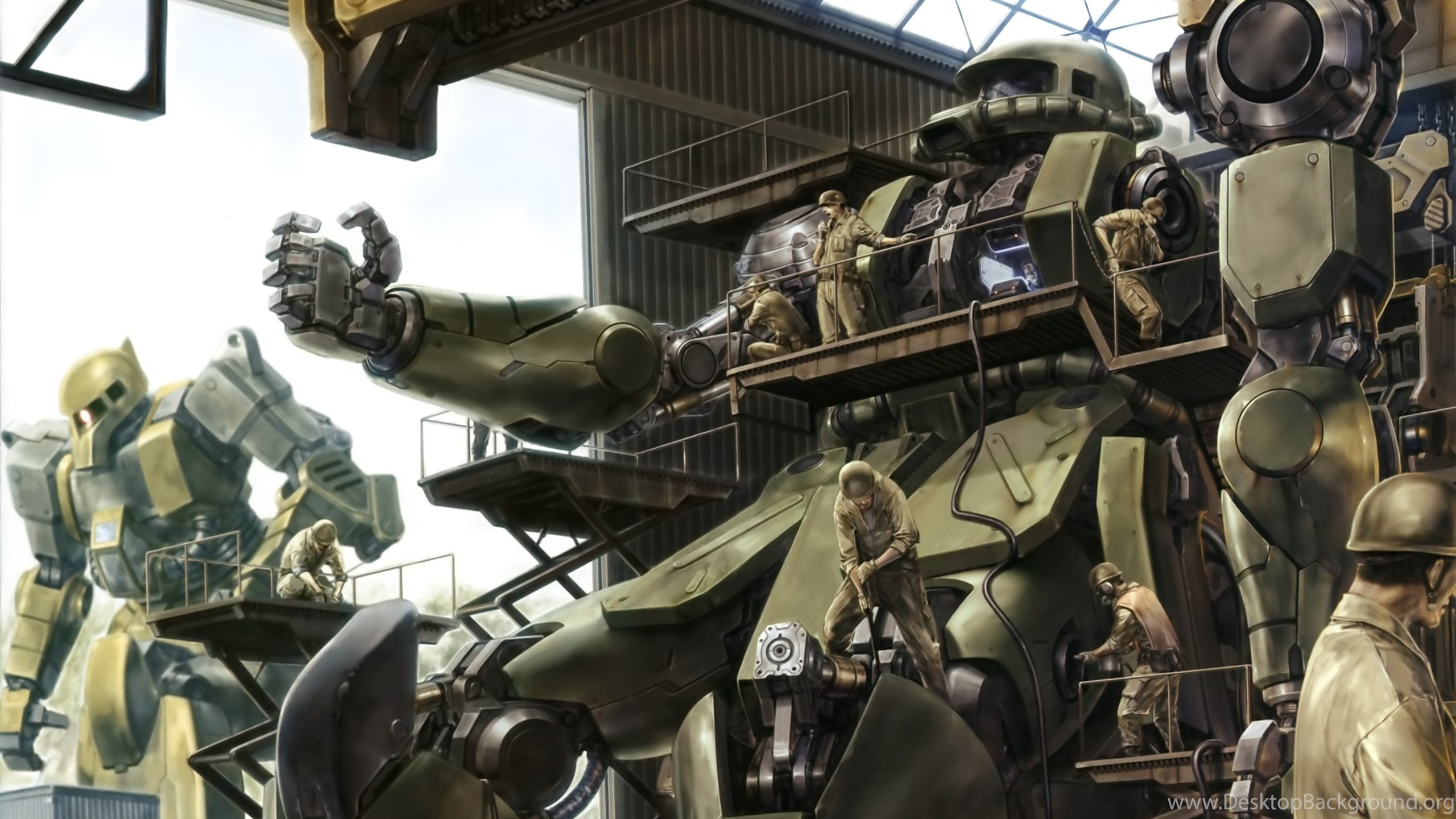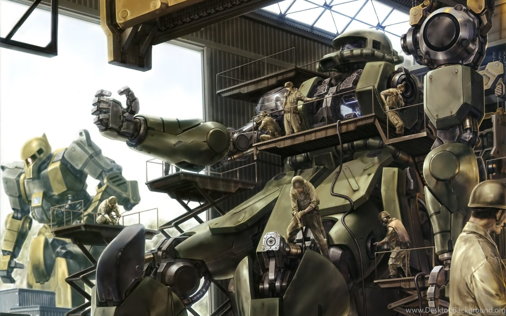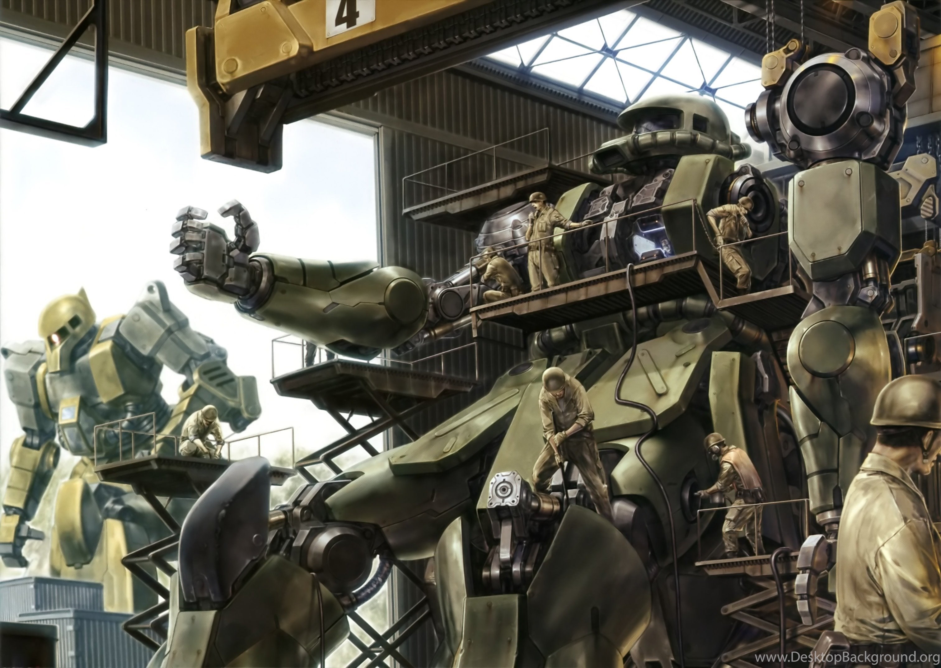 Amazing Art Of Zakus Being Repaired : Gundam Desktop Background