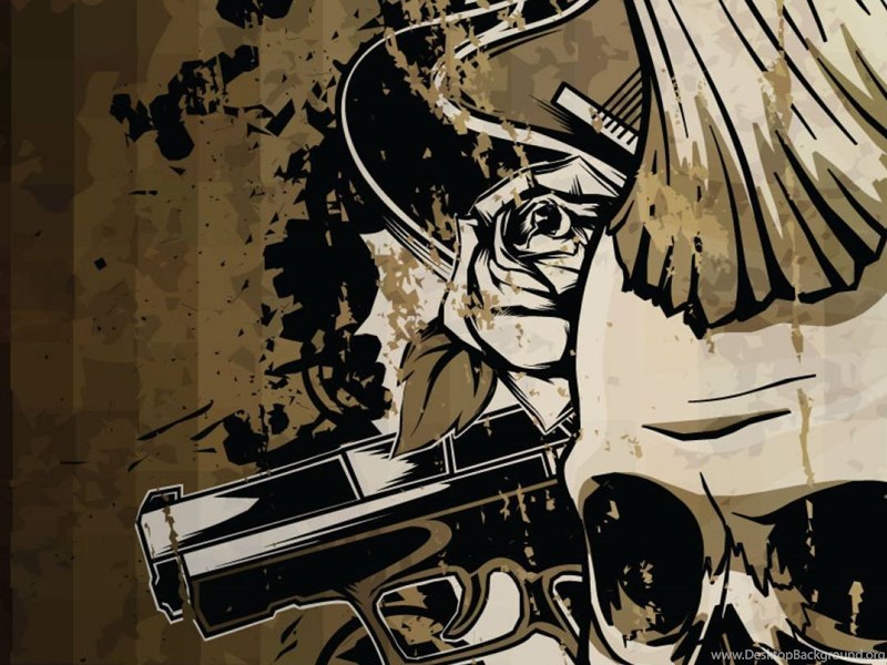 Tags: Skulls And Guns Wallpapers Main color: DarkOliveGreen