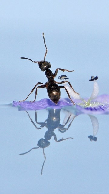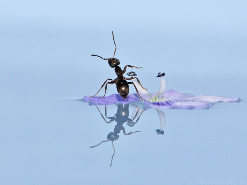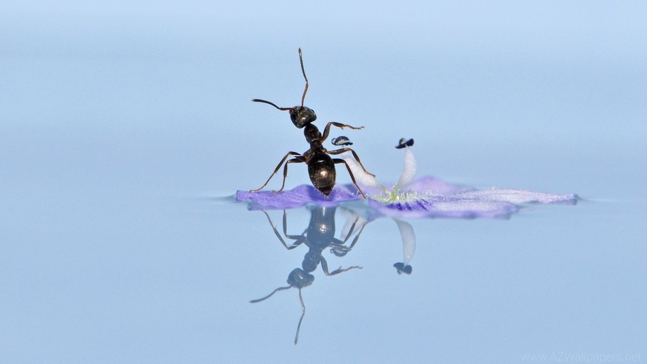 Big Black Ant Swim In Water On Flower Images Desktop Background
