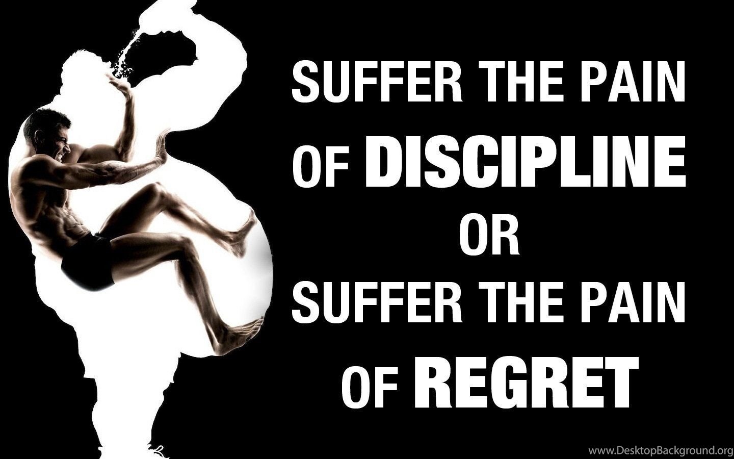Description: Download Black Backgrounds Discipline Fat Motivation Motivational Posters ... Desktop Background Desktop Background from the above display resolutions for Standart 4:3, Widescreen 16:10, Widescreen 16:9, Netbook, Tablet, Playbook, PlayStation, HD, Android HD , iPhone, iPhone 3G, iPhone 3GS. If you want, you can download Original resolution which may fits perfect to your screen.