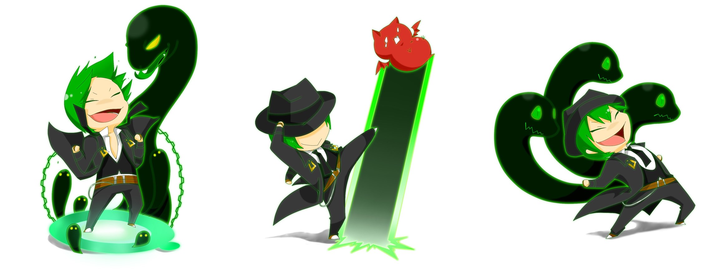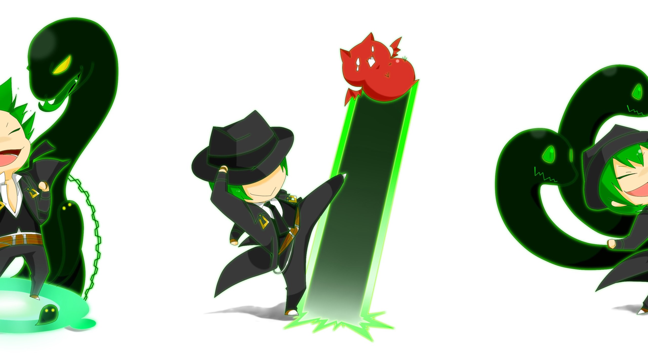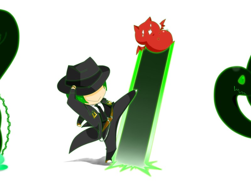 Blazblue Chibi Echigoya Gloves Green Eyes Green Hair Hat Hazama ... Desktop Background