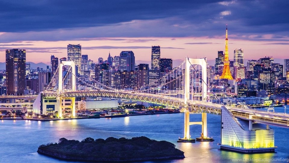 Bridges: Tokyo Japanese Scenery Lake City Sky Bridge Japan Odaiba ... Desktop Background