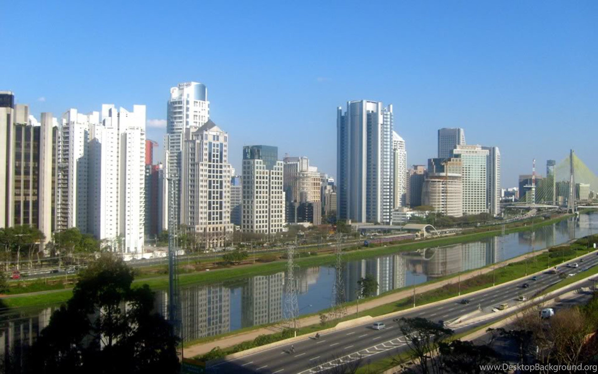 Buildings River Sao Paulo City Megapole South America Brazil ... Desktop Background