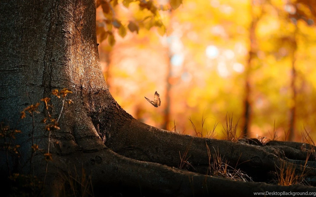 Butterflies On The Tree Bark Wallpapers Desktop Background