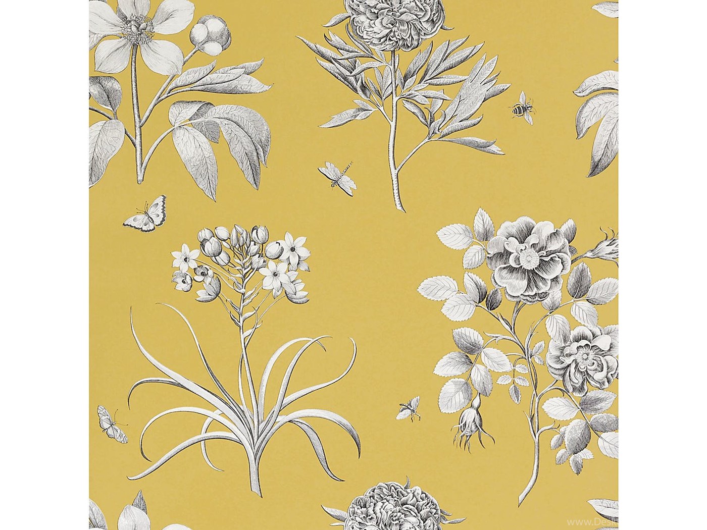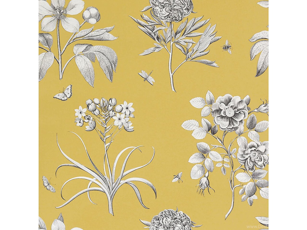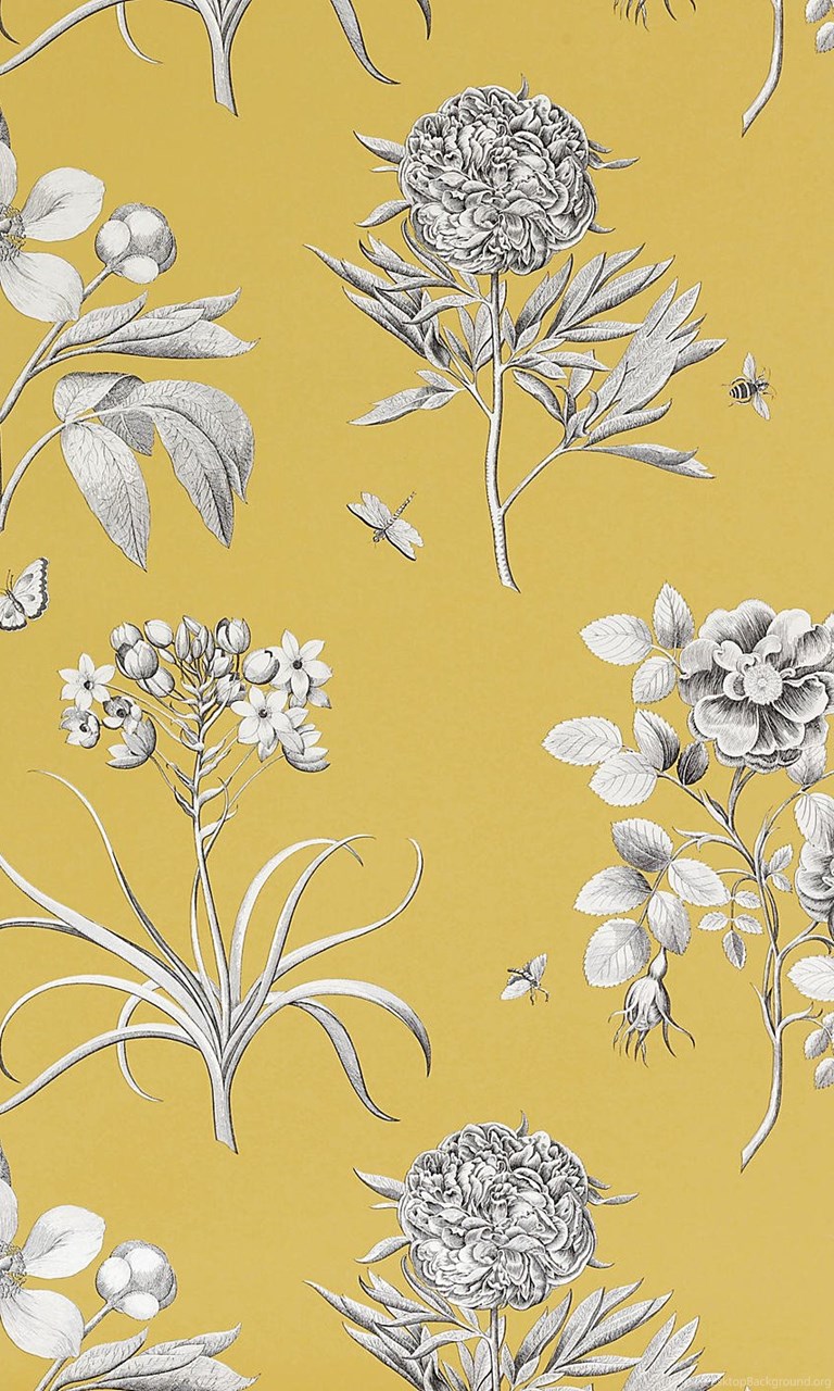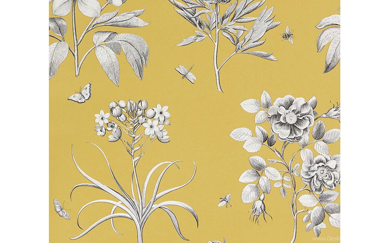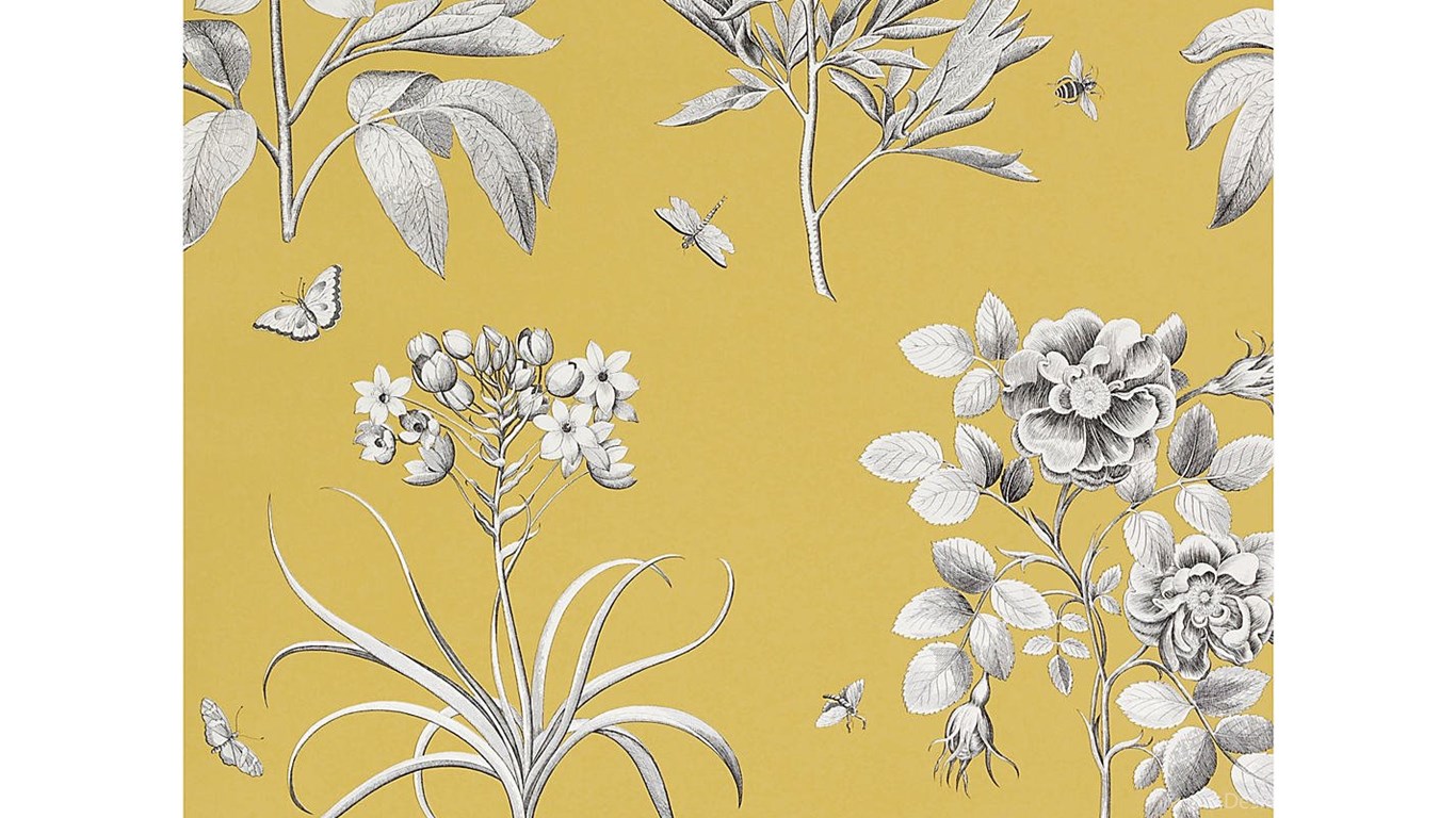 Buy Sanderson Wallpaper, Etchings And Roses DPFWER104, Yellow ... Desktop Background
