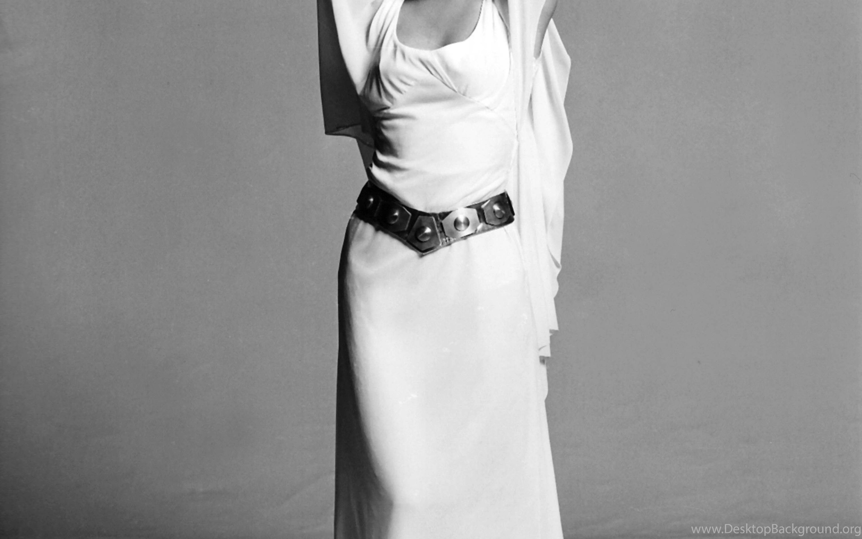 Carrie Fisher, Grayscale, Star Wars, White Dress, Leia Organa ... Desktop Background