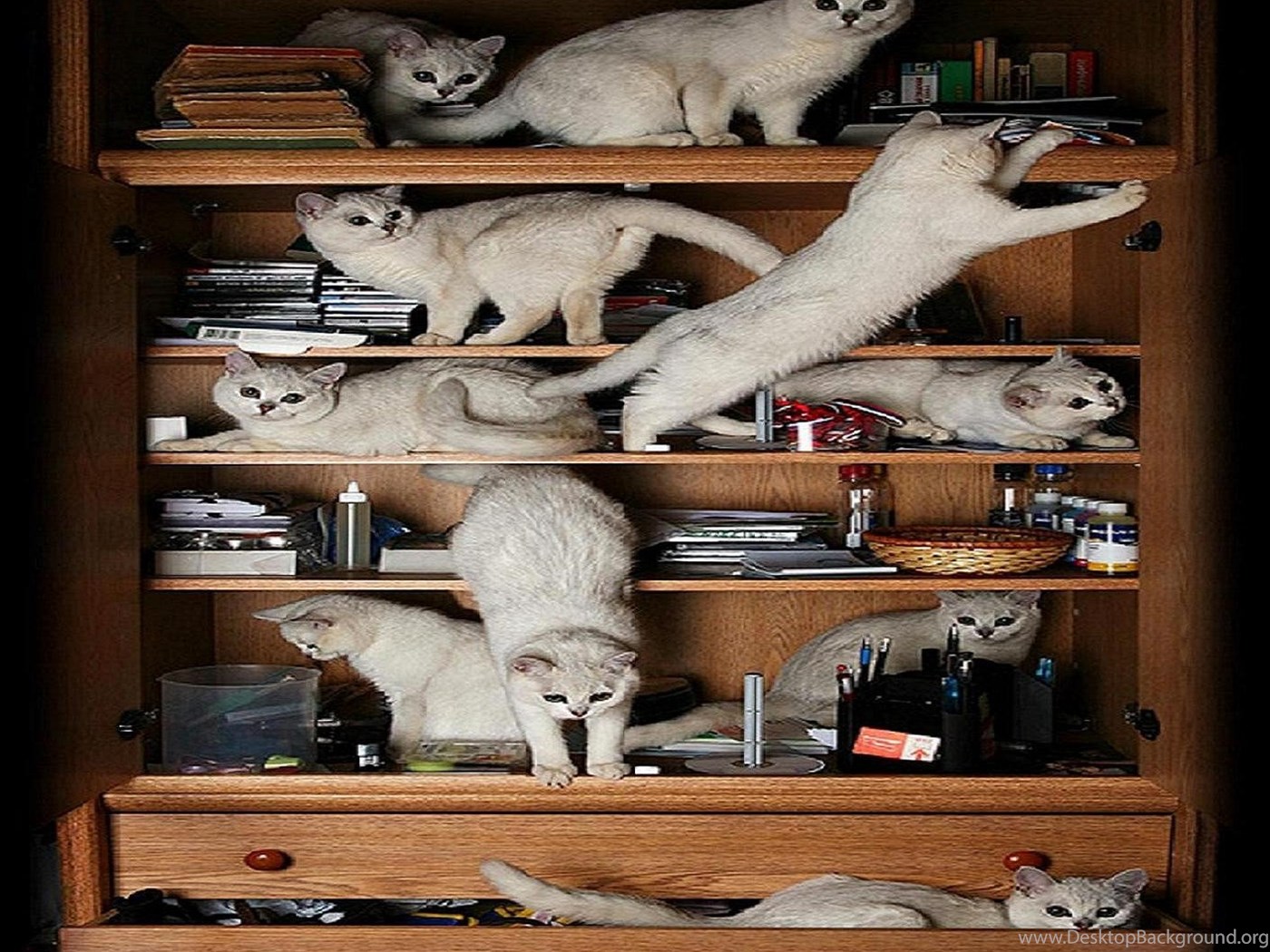 Description: Download Cats: Cabinet Cats Animal Mischief Cat Bookcase Play HD Wallpapers ... Desktop Background Desktop Background from the above display resolutions for Standart 4:3, Standart 5:4, Widescreen 16:10, Widescreen 16:9, Netbook, Tablet, Playbook, PlayStation, HD, Android HD , iPad, iPad 2, iPad mini, iPhone 5, iPhone 5S, iPhone 5C, iPod Touch 5, iPhone 4, iPhone 4S, iPod touch 4, iPhone, iPhone 3G, iPhone 3GS. If you want, you can download Original resolution which may fits perfect to your screen.