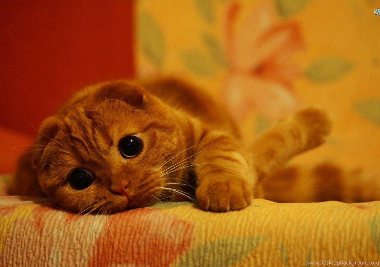 Cats: Cute Little Kitty Adorable Cat Relaxed Sweet Animal Orange ... Desktop Background