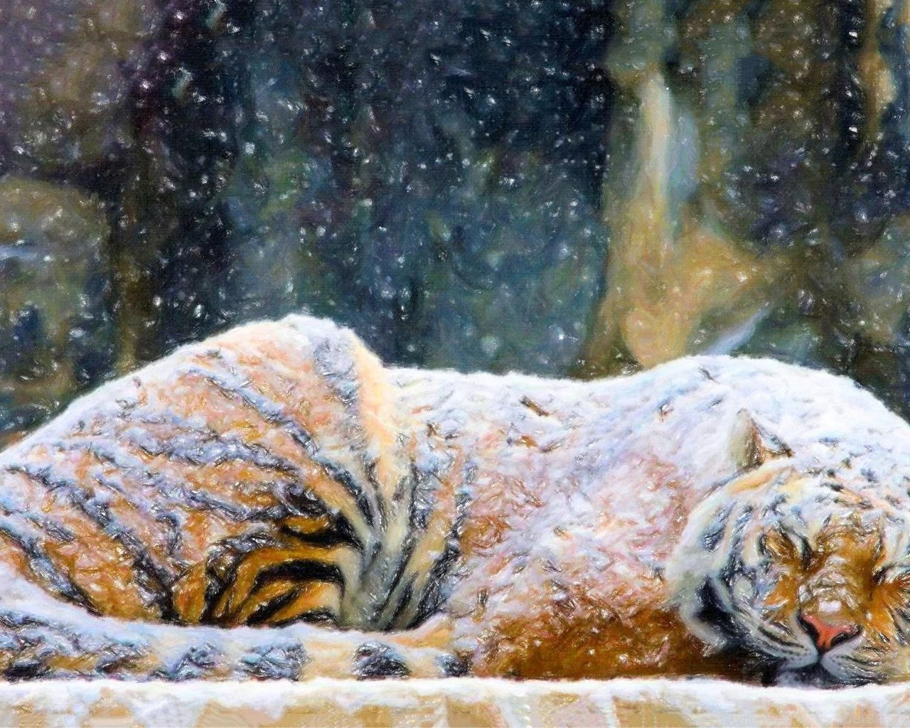 Description: Download Cats: Tiger Covered Snow Painting Animals Art Paintings Winter ... Desktop Background Desktop Background from the above display resolutions for Standart 4:3, Standart 5:4, Widescreen 16:10, Widescreen 16:9, Netbook, Tablet, Playbook, PlayStation, HD, Android HD , iPad, iPad 2, iPad mini, iPhone 5, iPhone 5S, iPhone 5C, iPod Touch 5, iPhone 4, iPhone 4S, iPod touch 4, iPhone, iPhone 3G, iPhone 3GS. If you want, you can download Original resolution which may fits perfect to your screen.