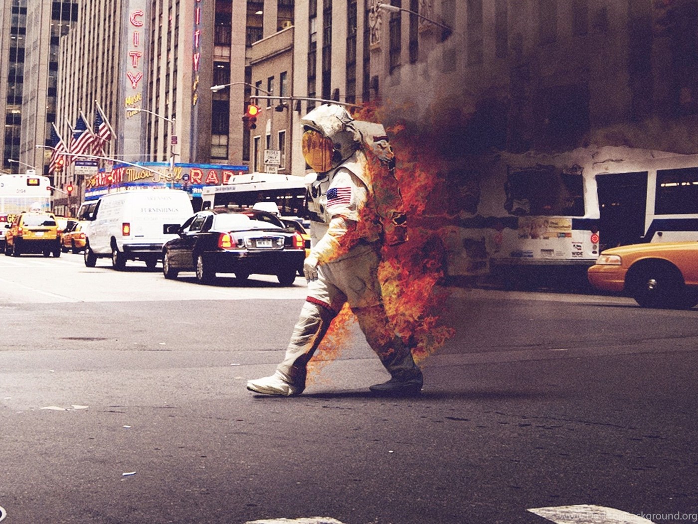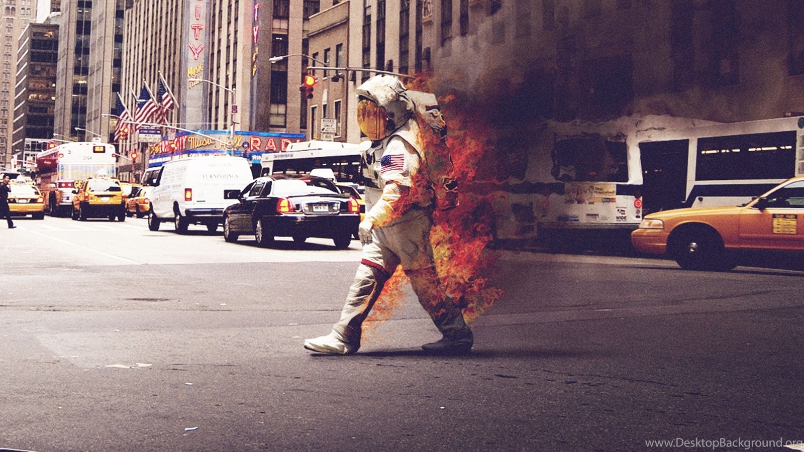 Cityscapes Streets Riot Astronauts New York City On Fire Wallpapers ... Desktop Background