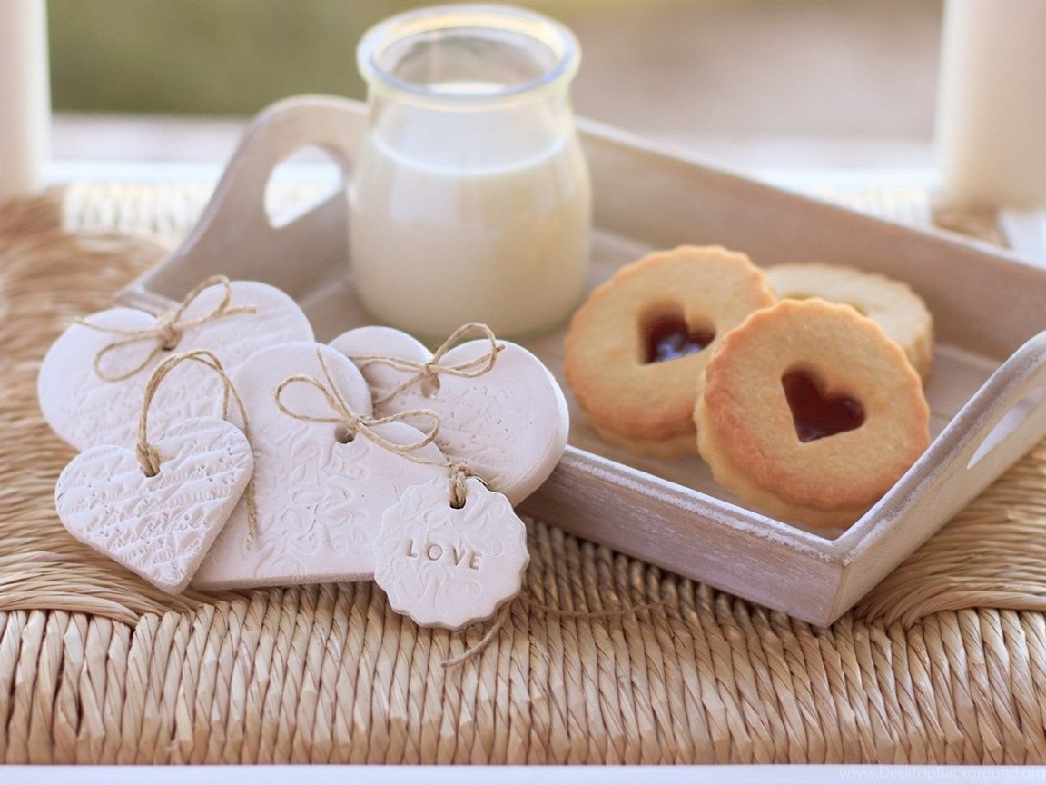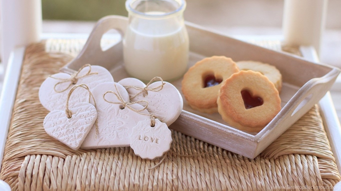Cookies milk sweet hearts love food hd wallpapers Magic4Walls.com Desktop Background