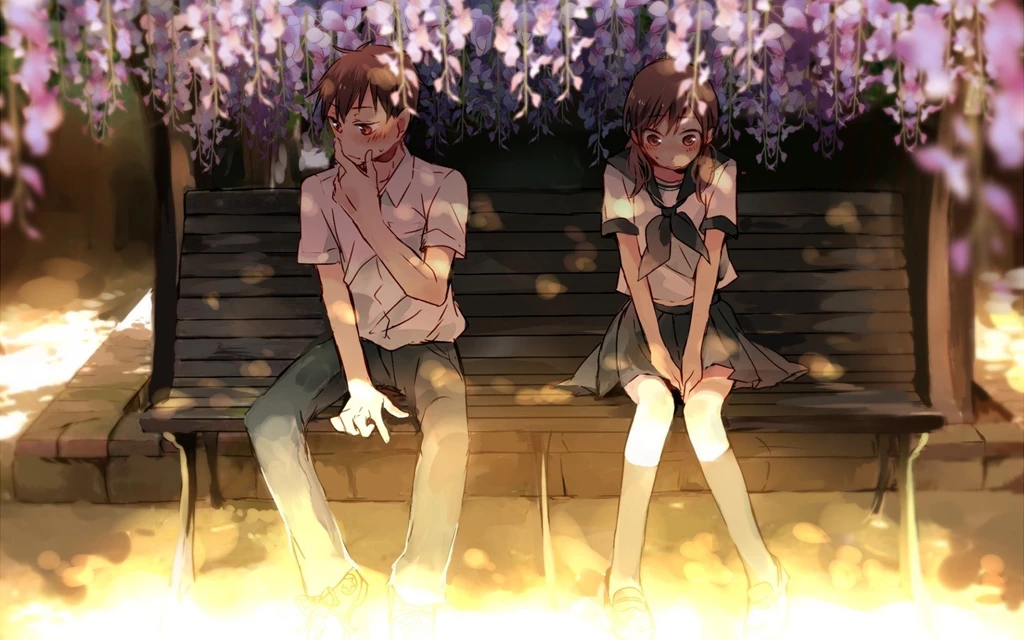 Cute Anime Girl Beautiful Short Hair Couple Love Boy School ... Desktop Background