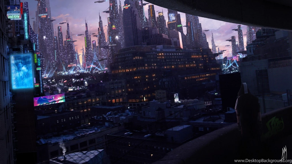 Cyberpunk City Lights Future Skyscrapers AMM Desktop Background