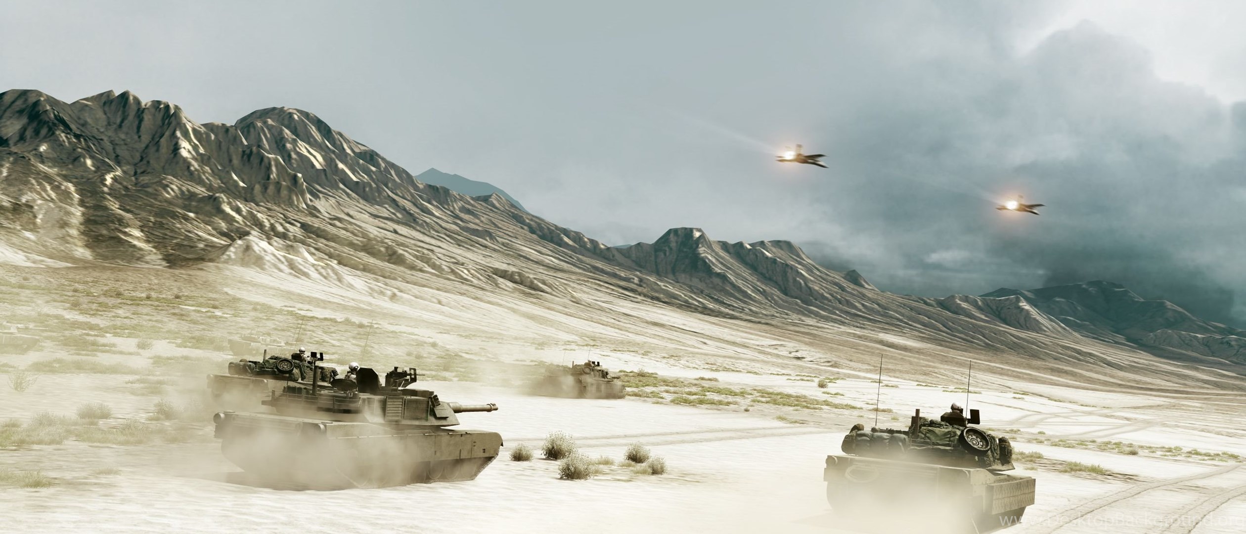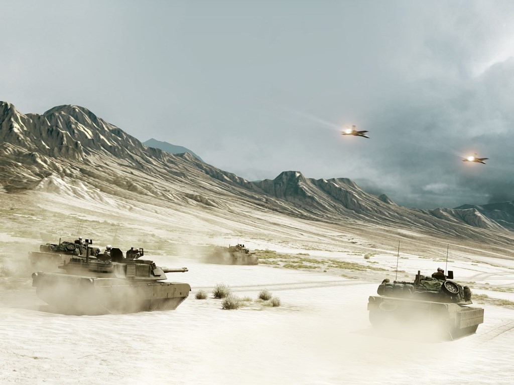 Deserts Tanks Armor Assault Jet Aircraft Battlefield Desktop Background
