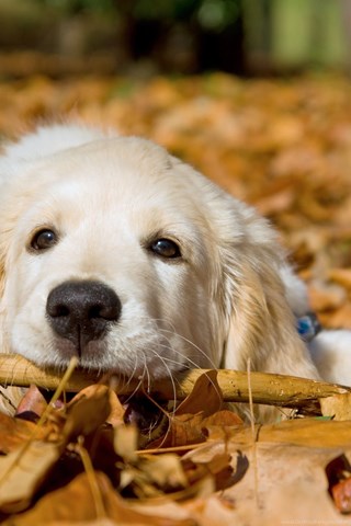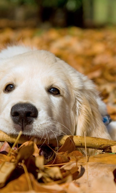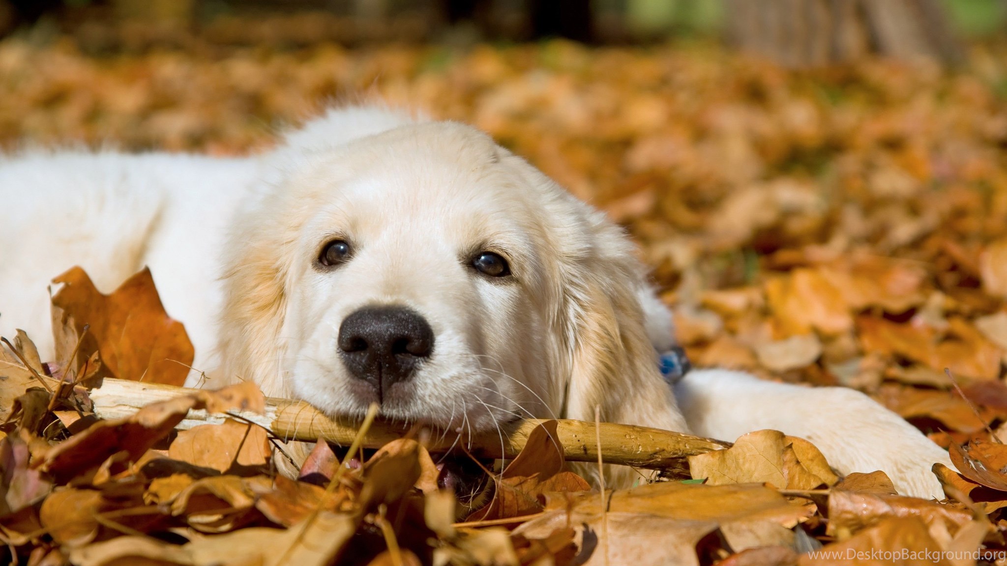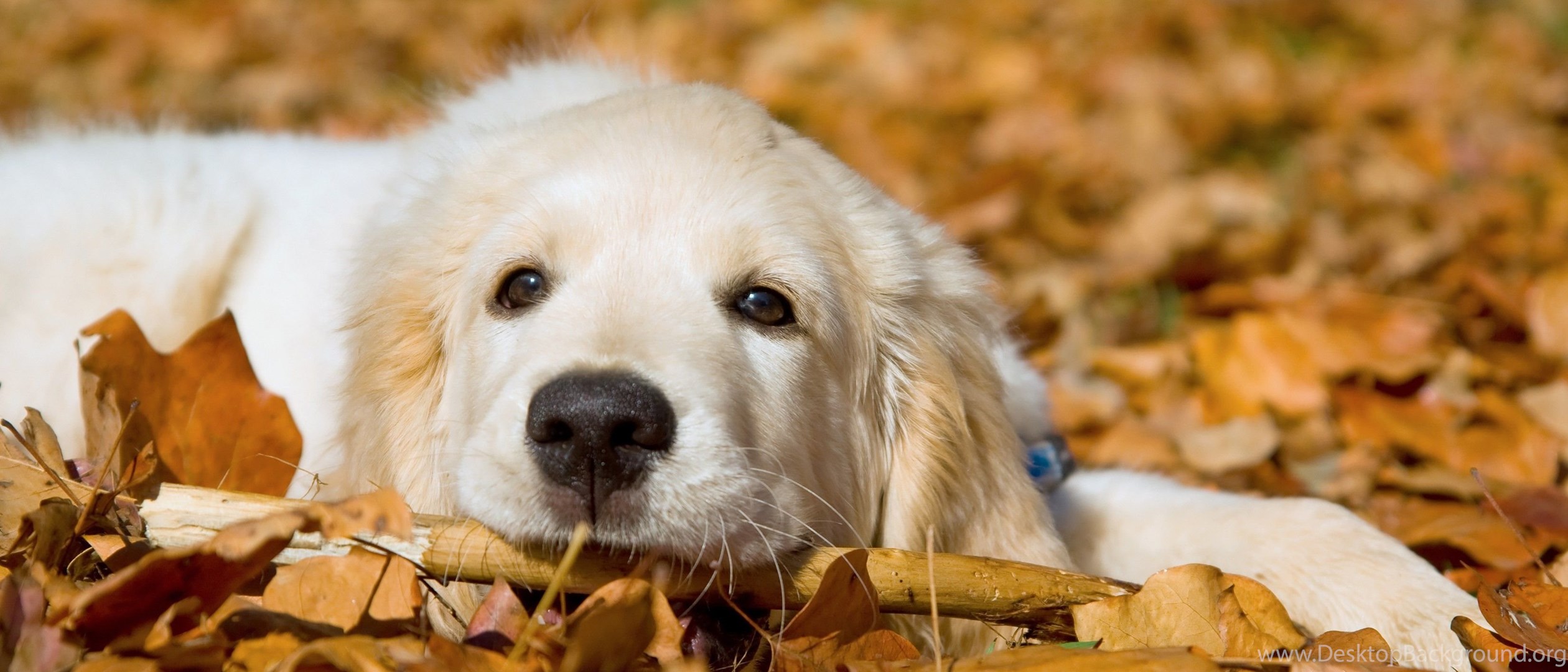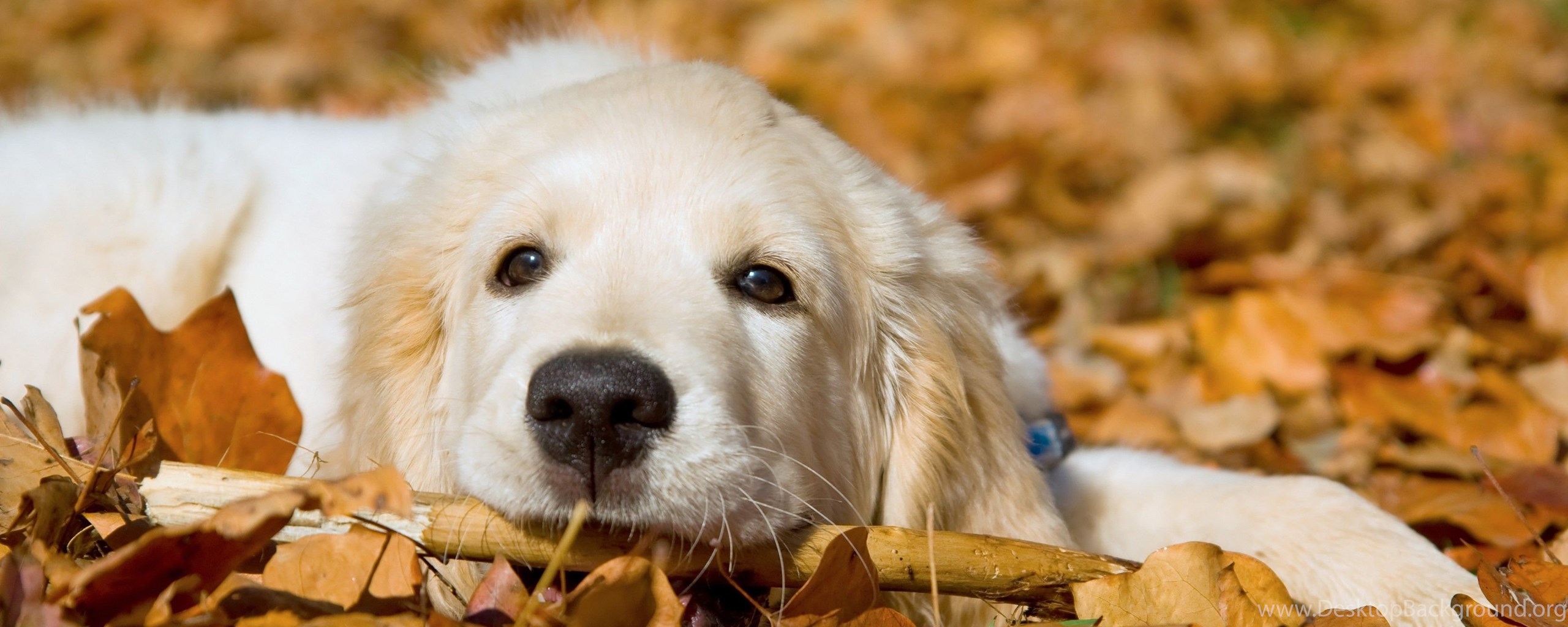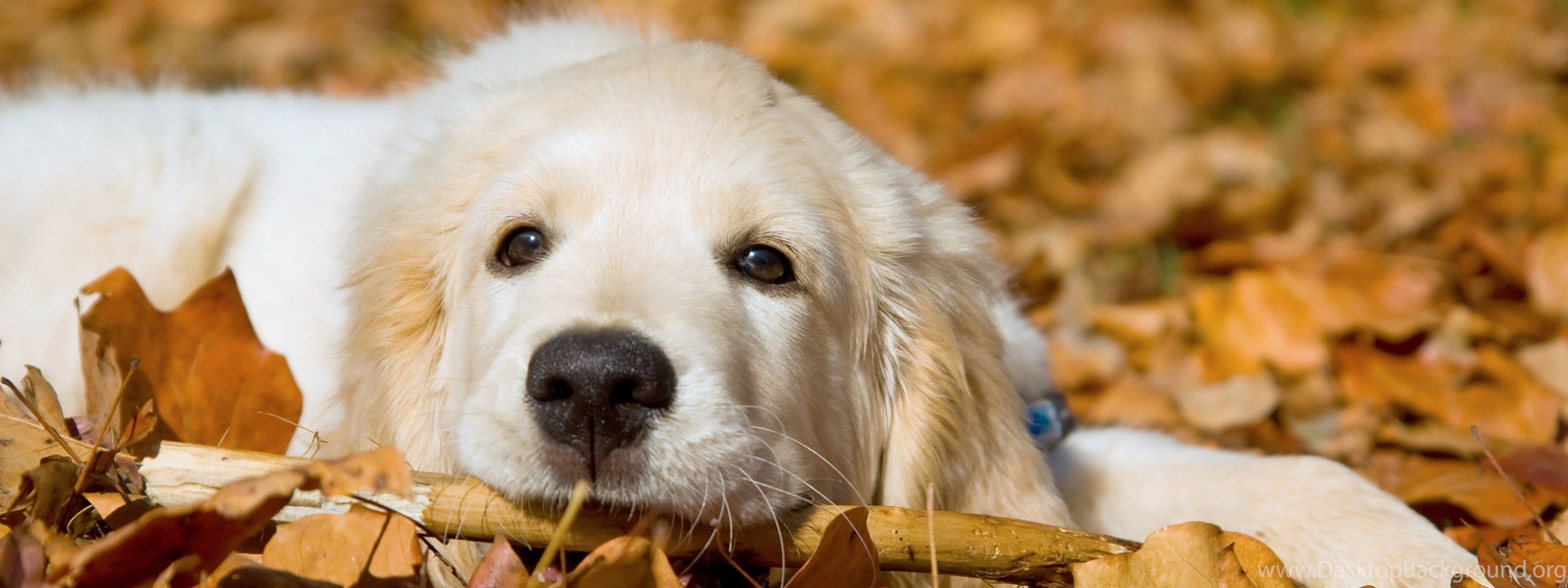 Dogs: Feel Good Autumn Dogs White Animals Golden Cute Leaves Dog ... Desktop Background