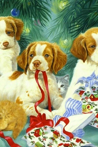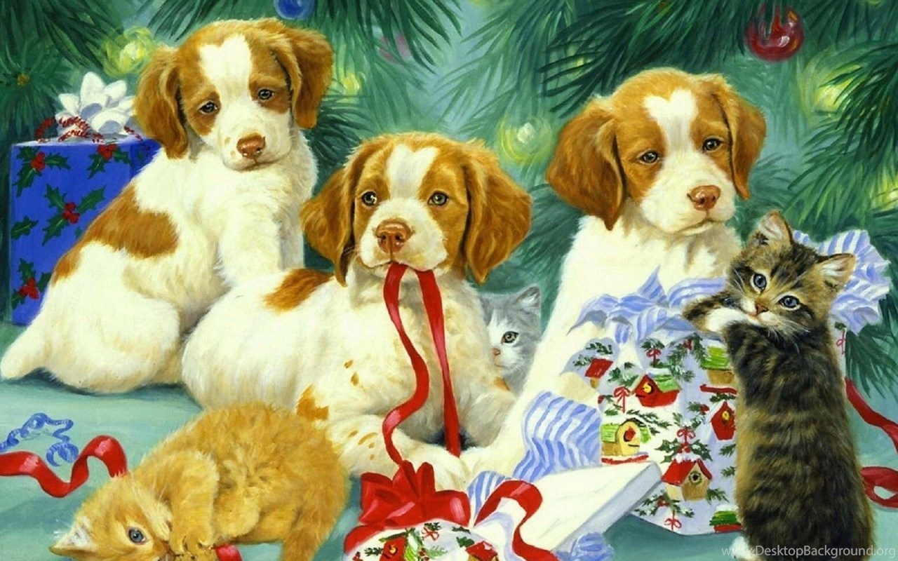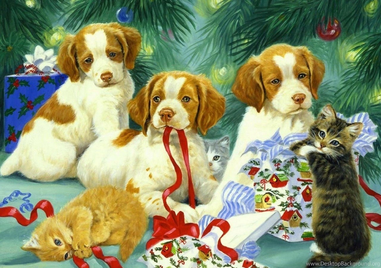 Description: Download Dogs: Puppies Kittens Xmas New Year Paintings Christmas Cats Dogs ... Desktop Background Desktop Background from the above display resolutions for Standart 4:3, Standart 5:4, Widescreen 16:10, Widescreen 16:9, Netbook, Tablet, Playbook, PlayStation, HD, Android HD , iPad, iPad 2, iPad mini, iPhone 5, iPhone 5S, iPhone 5C, iPod Touch 5, iPhone 4, iPhone 4S, iPod touch 4, iPhone, iPhone 3G, iPhone 3GS. If you want, you can download Original resolution which may fits perfect to your screen.