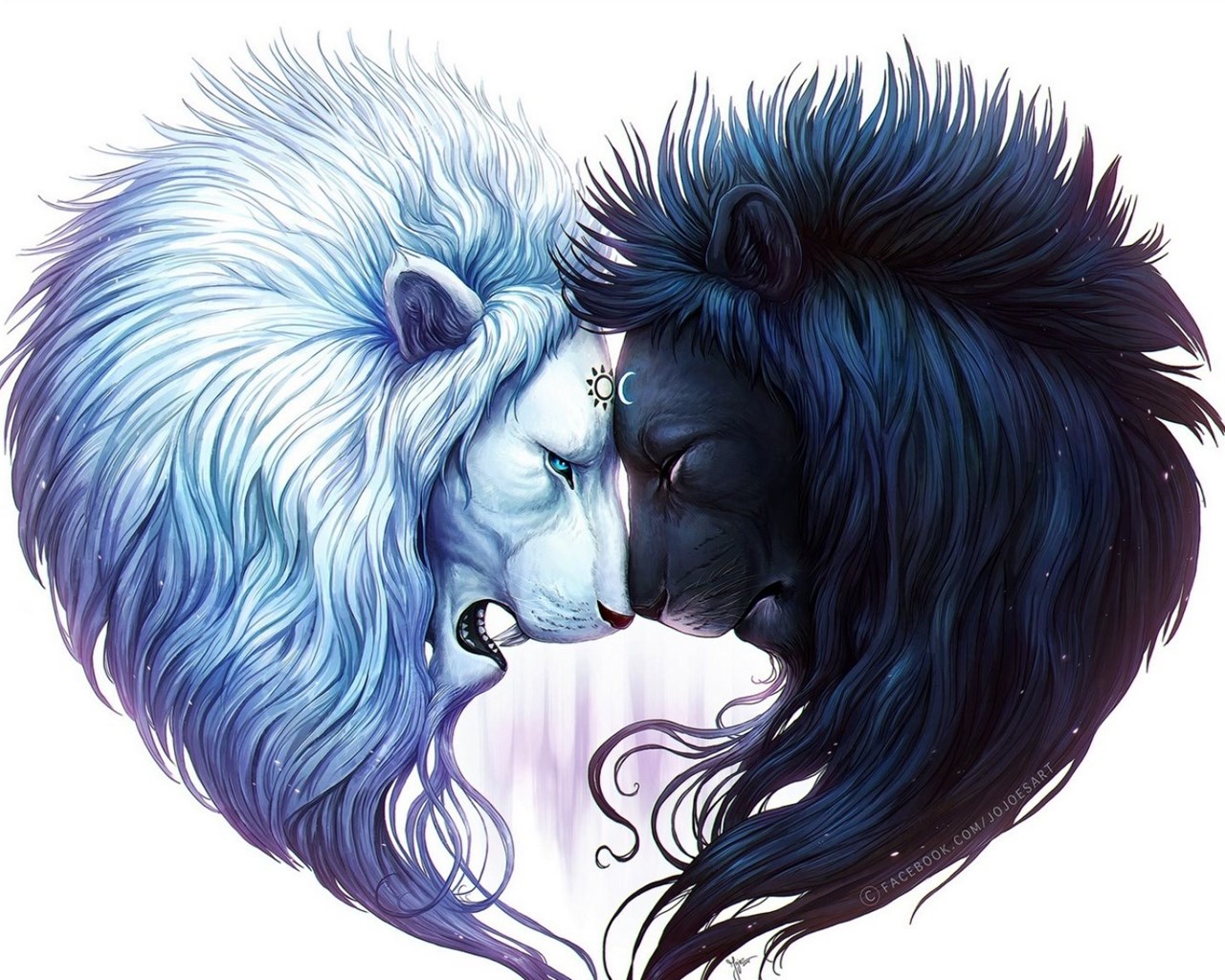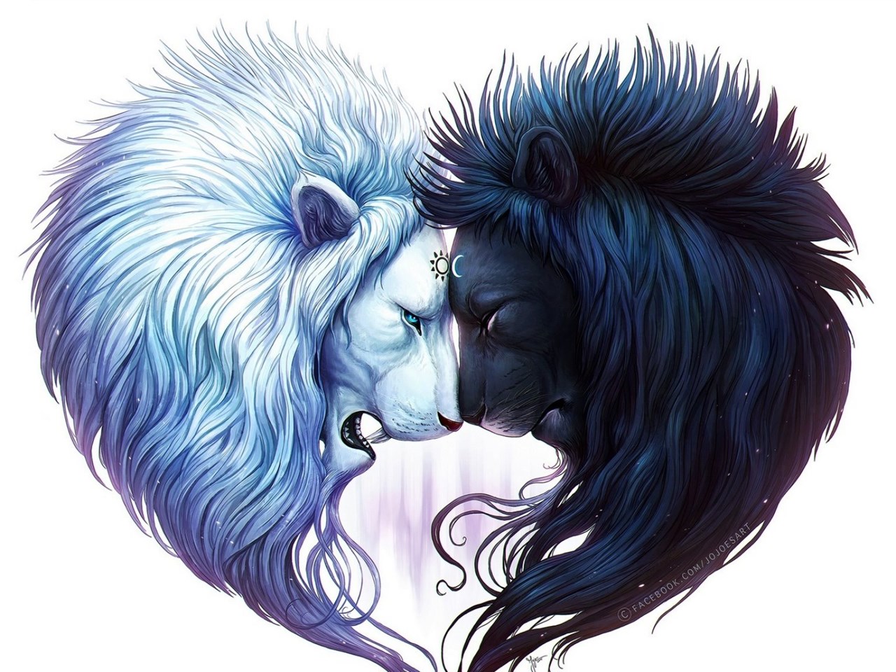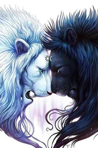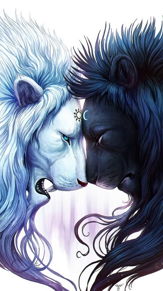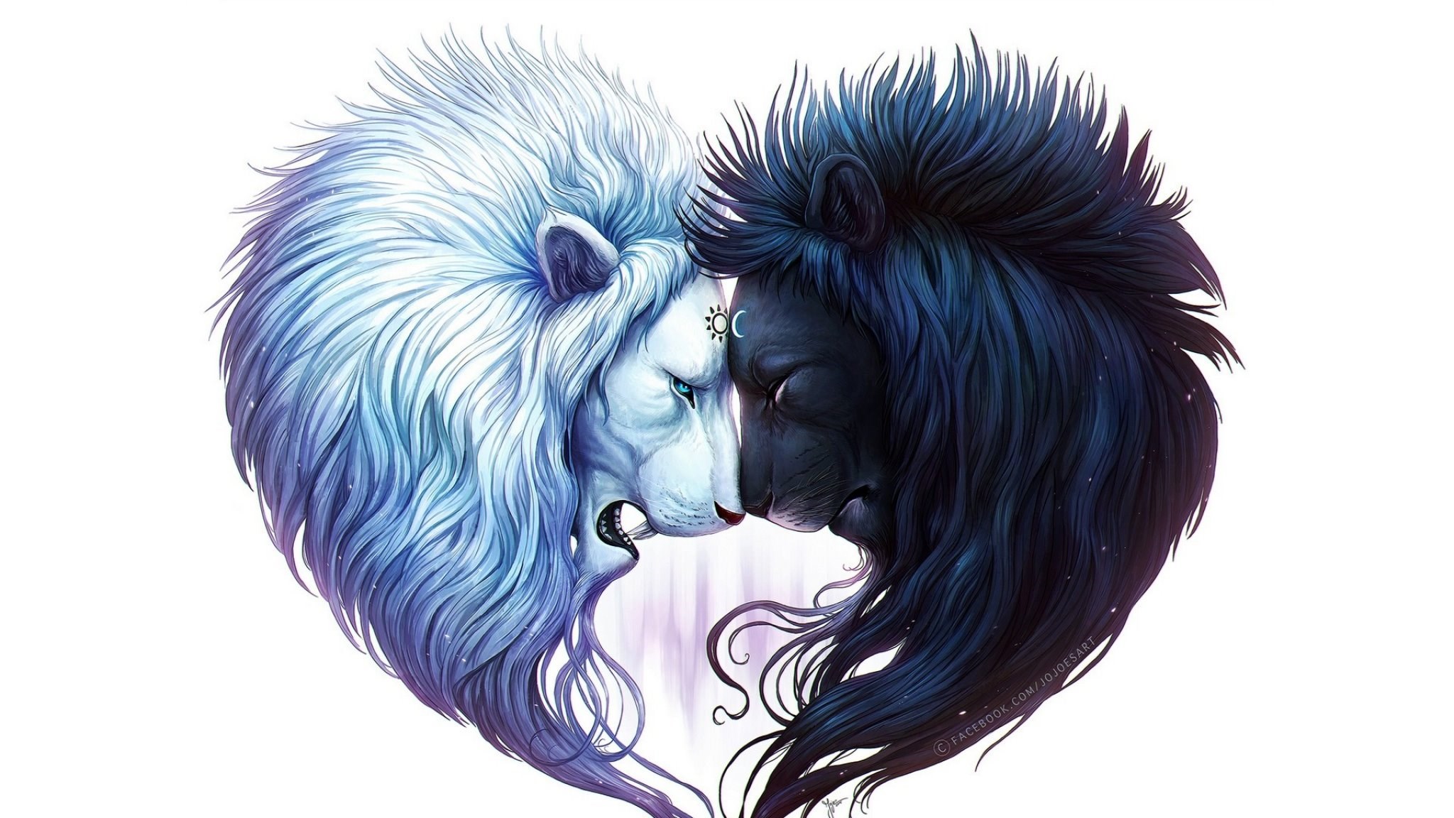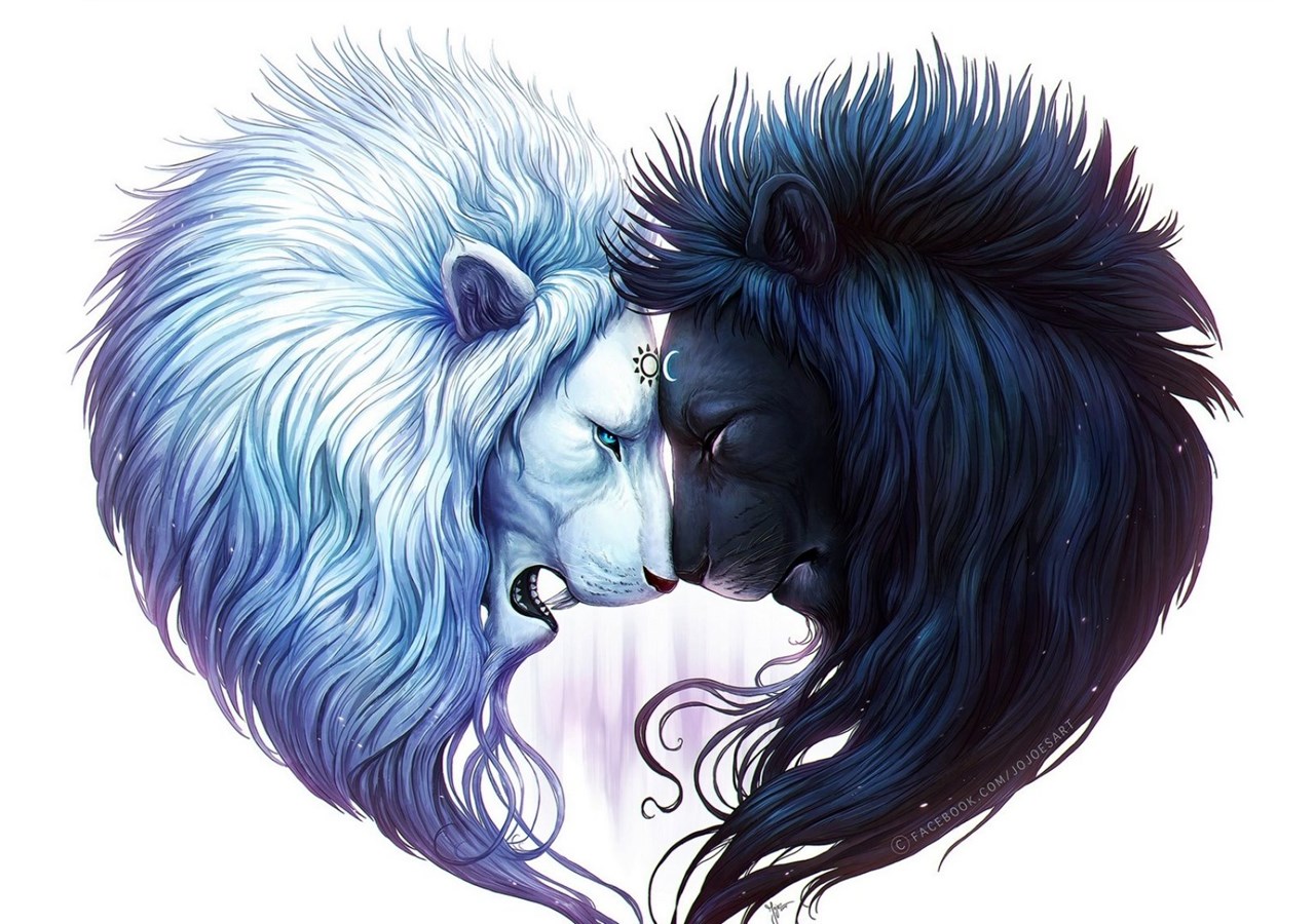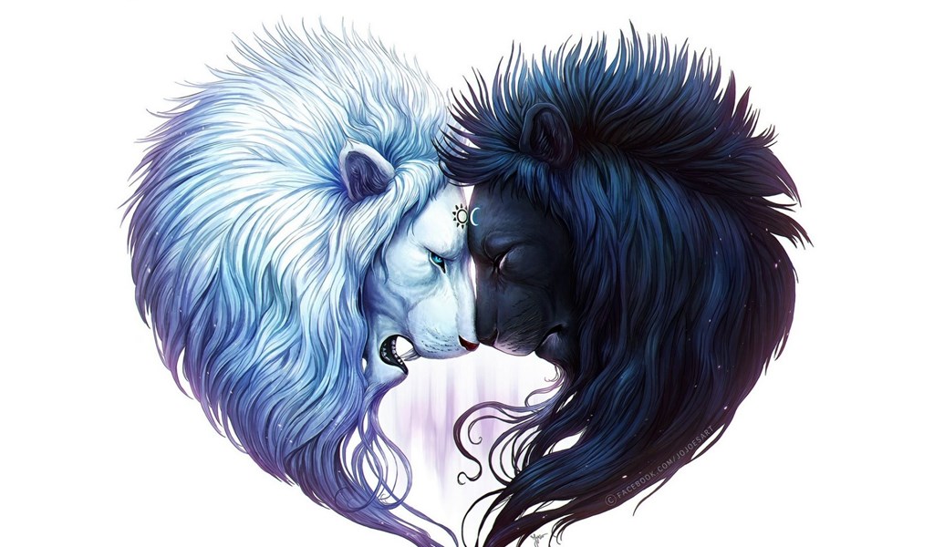 Download Wallpapers 2048x1152 Digital Art, White Lion, Black Lion ... Desktop Background