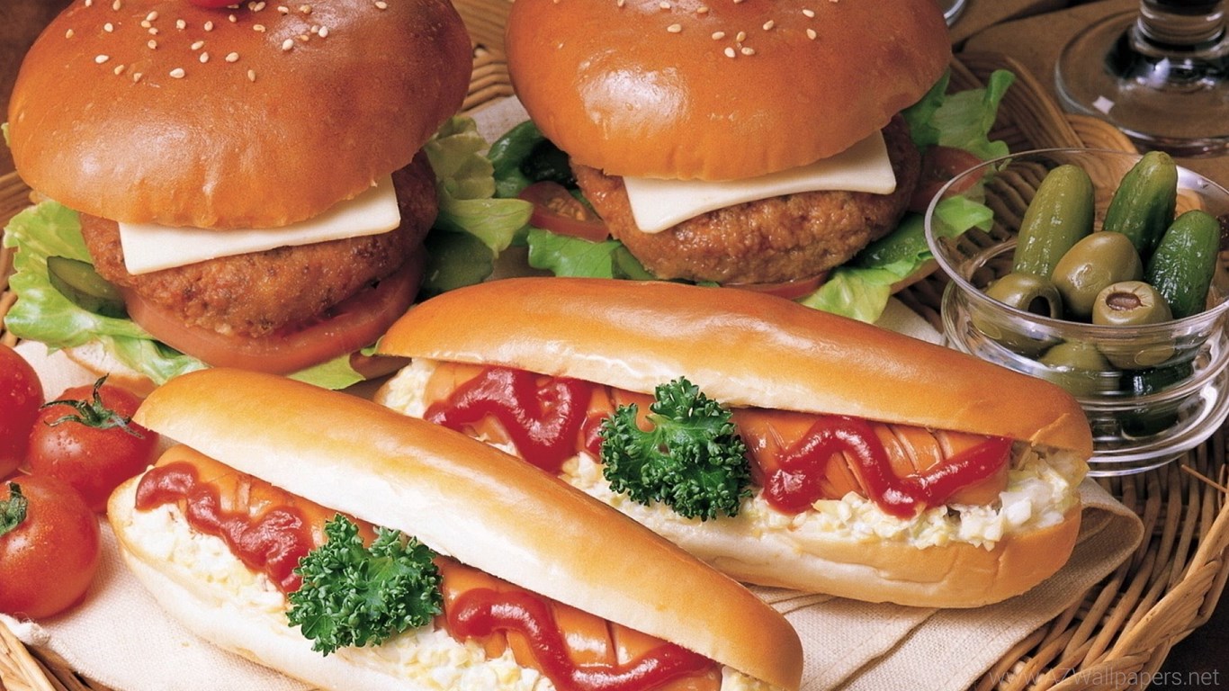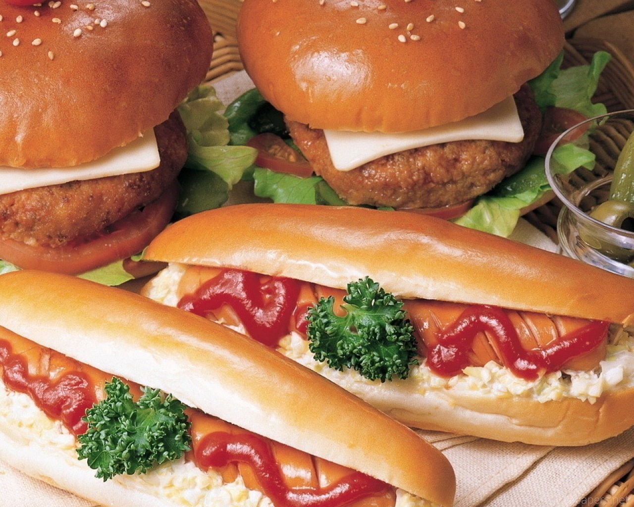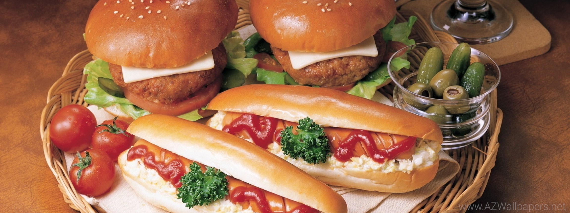 Download Wallpapers 2560x1024 Hamburger, Hot Dogs In Dough ... Desktop Background