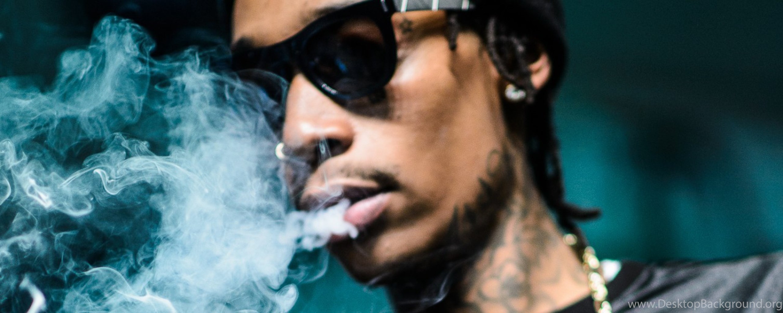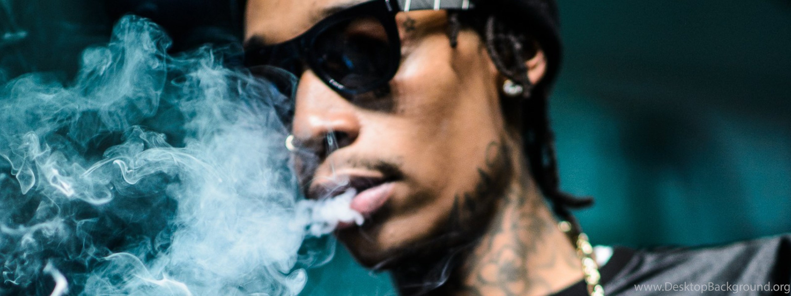 Download Wallpapers 3840x1200 Wiz Khalifa, Rapper, Smoke, Face Dual ... Desktop Background