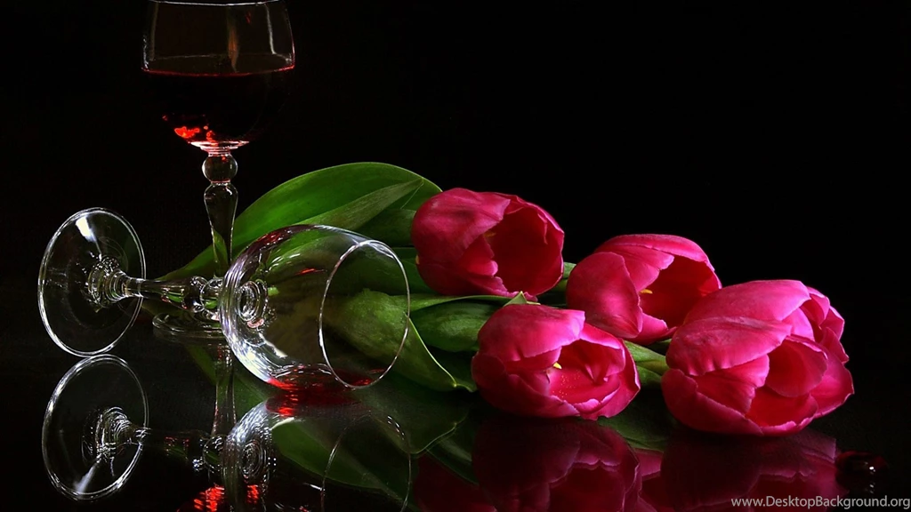 Download Wallpapers 3840x2160 Tulips, Flowers, Lie, Glasses, Wine ... Desktop Background