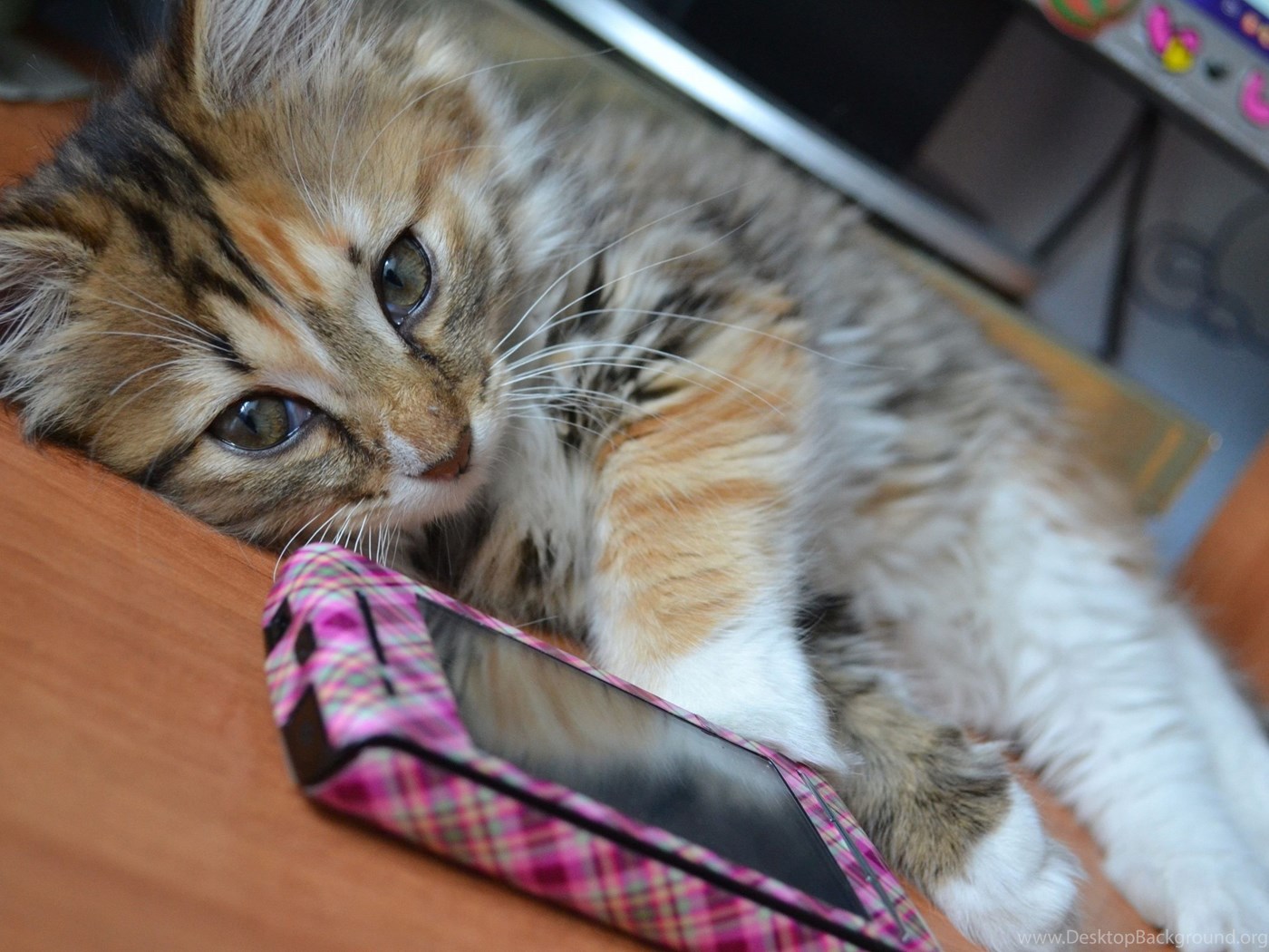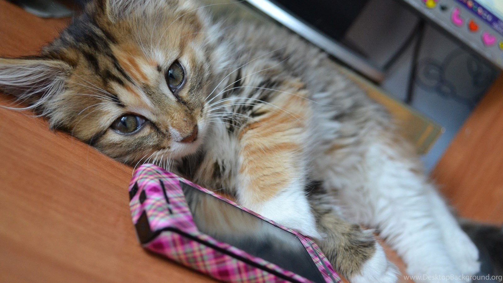 Download Wallpapers 3840x2400 Cat, Phone, Lie, Fluffy Ultra HD 4K ... Desktop Background
