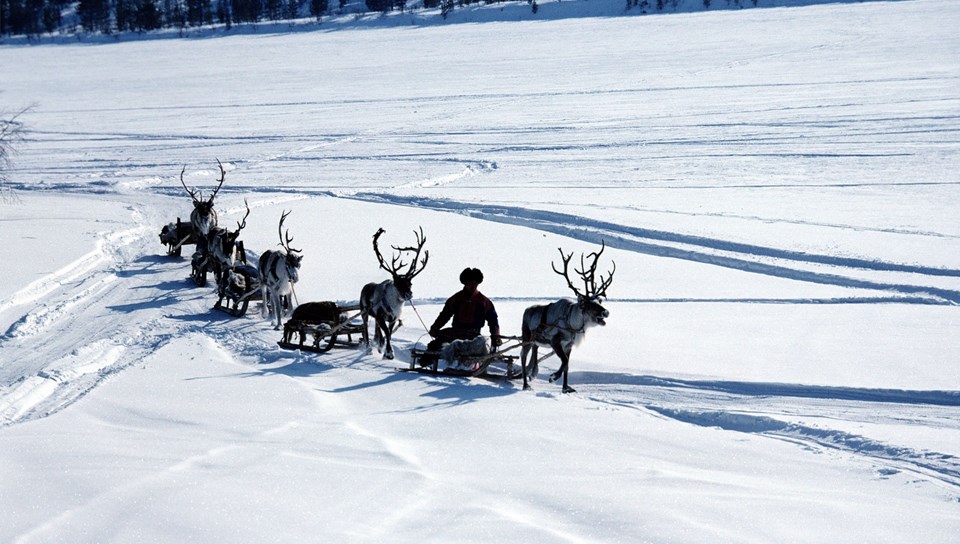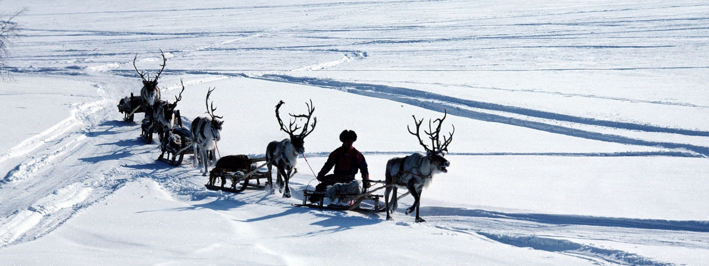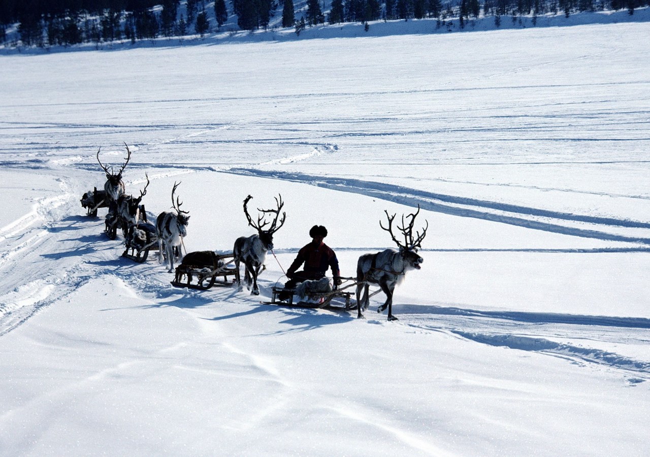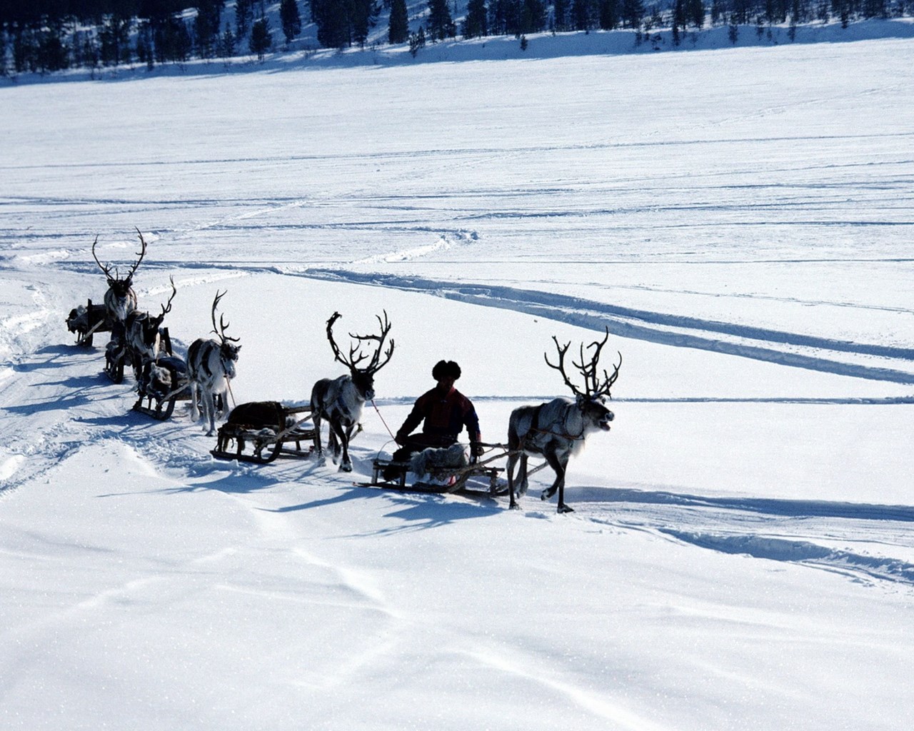 Download Wallpapers 3840x2400 Snow, Deer, Sledge, Person, Transport ... Desktop Background