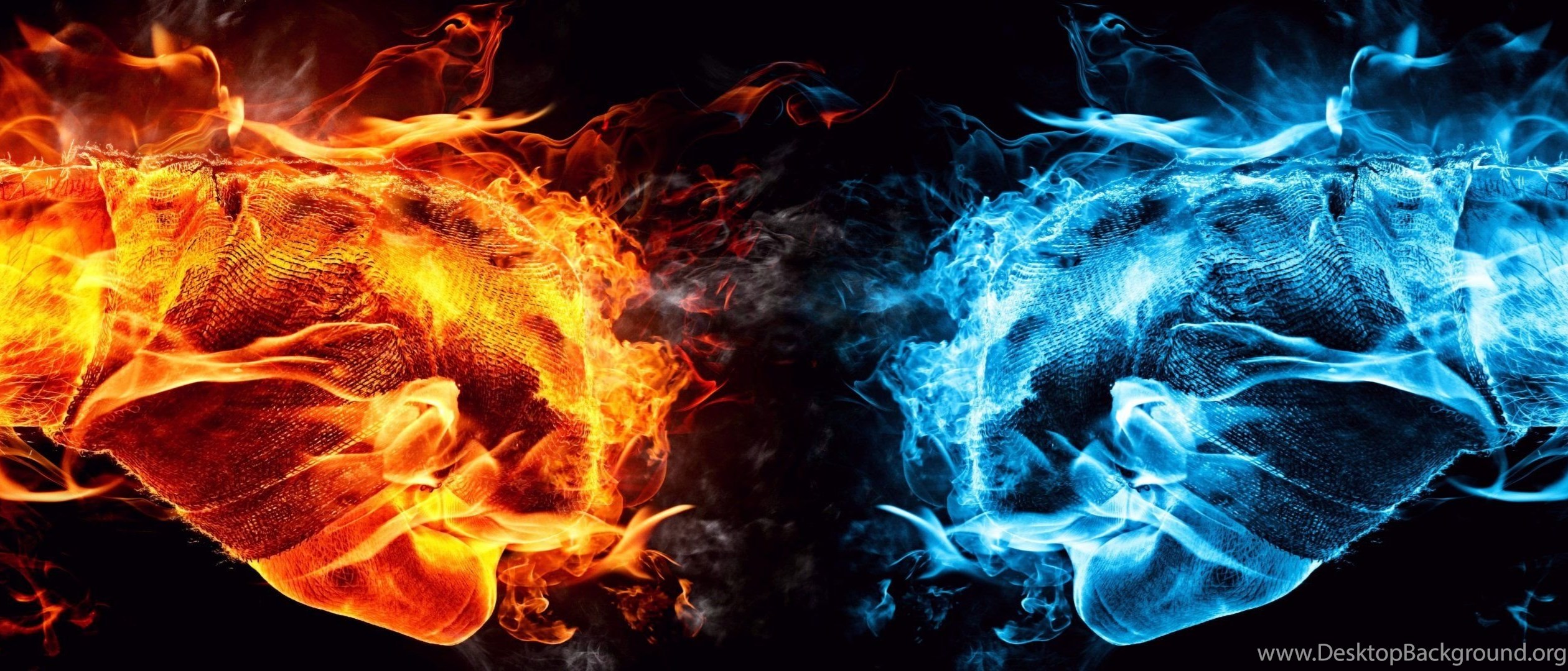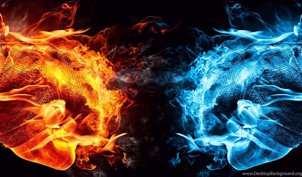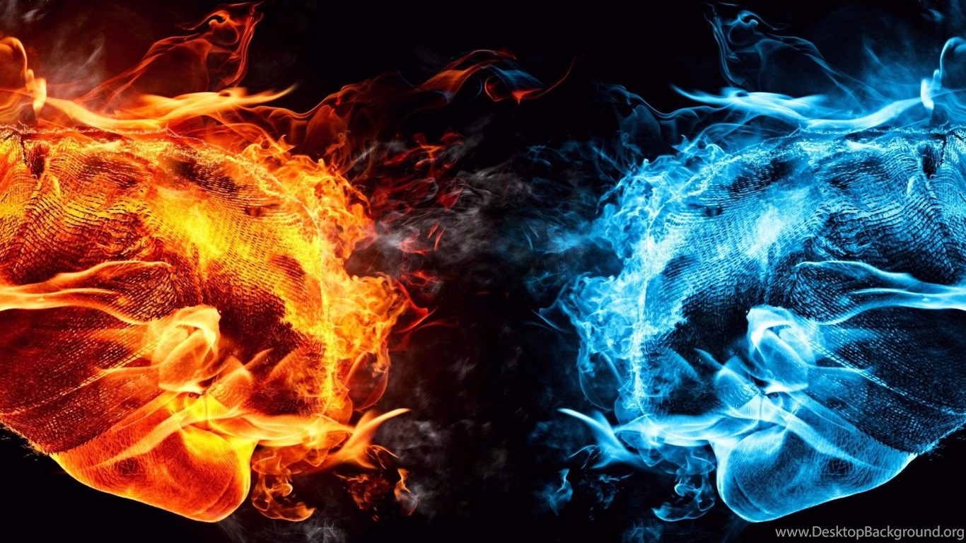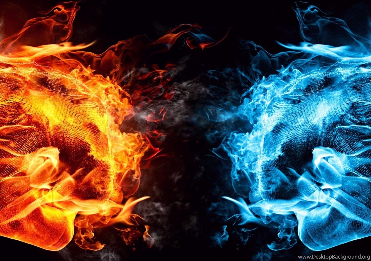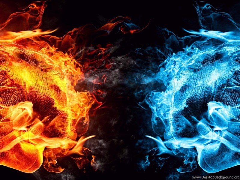 Dual Monitor Screen Multi Multiple Fire Feu Blue Bleu Orange ... Desktop Background