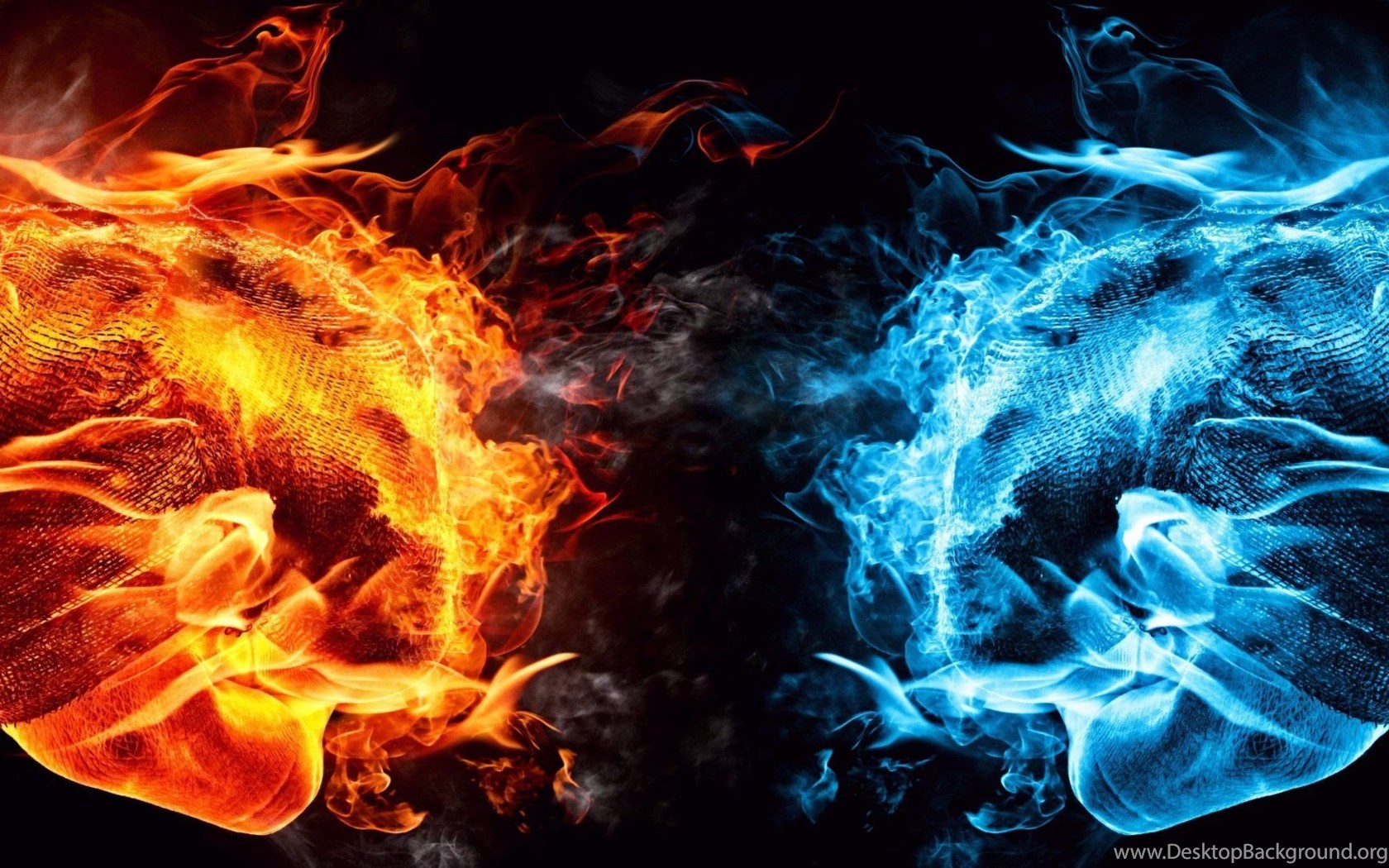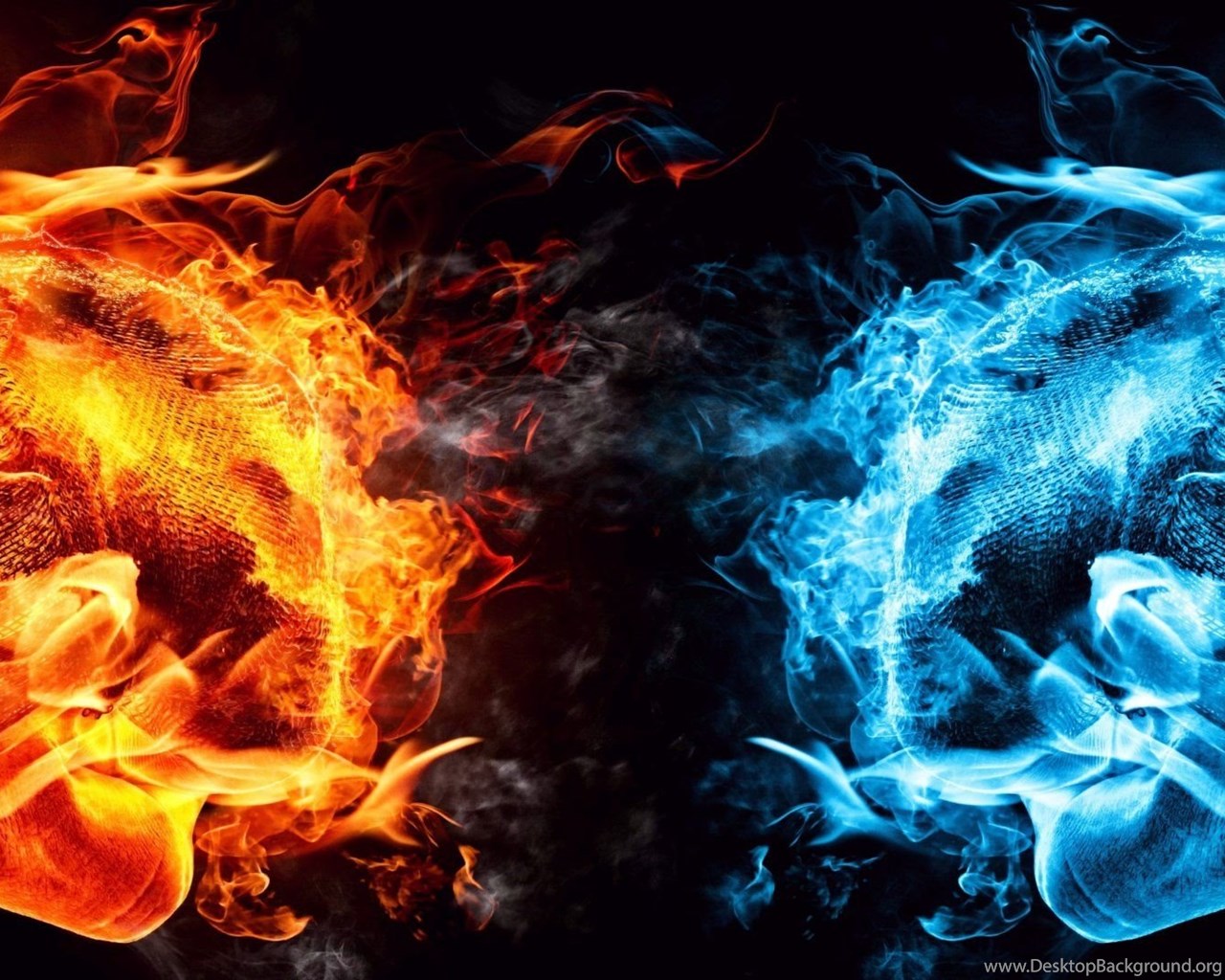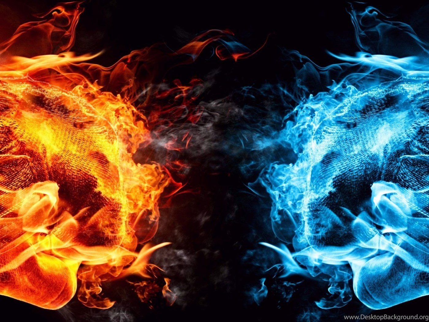 Dual Monitor Screen Multi Multiple Fire Feu Blue Bleu Orange ... Desktop Background