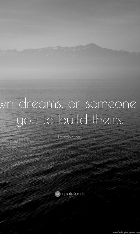 Description: Download Farrah Gray Quote: “Build Your Own Dreams, Or Someone Else Will ... Desktop Background Desktop Background from the above display resolutions for Standart 4:3, Standart 5:4, 4K Ultra HD 16:9, Wide 21:9, Dual Screen Wide, Widescreen 16:10, Widescreen 16:9, Retina Widescreen, 4K, Sony Z5, Netbook, Tablet, Playbook, PlayStation, HD, Android HD , iPad 2017, iPad 2018, iPad Air, iPad Air 2, iPad 3, iPad 4, iPad mini 2, iPad mini 3, iPad, iPad 2, iPad mini, iPhone XR, iPhone 6 Plus, iPhone 6S Plus, iPhone 7 Plus, iPhone 8 Plus, iPhone 6, iPhone 6S, iPhone 7, iPhone 8, iPhone 5, iPhone 5S, iPhone 5C, iPod Touch 5, iPhone 4, iPhone 4S, iPod touch 4, iPhone, iPhone 3G, iPhone 3GS. If you want, you can download Original resolution which may fits perfect to your screen.
