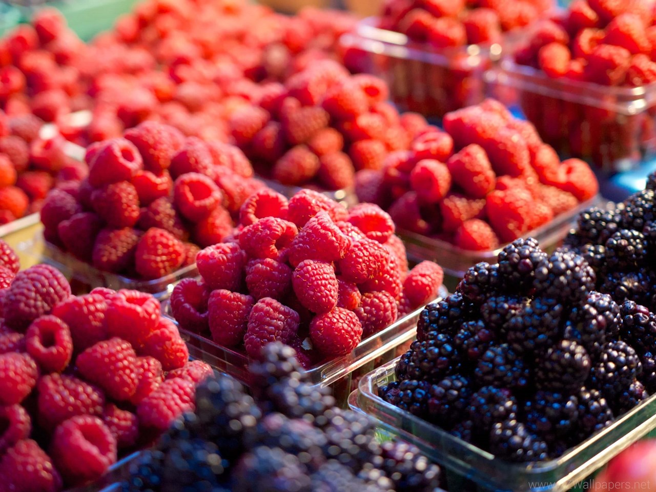 Fresh Raspberries & Blackberries Fruits At The Market 4K Wallpapers Desktop Background