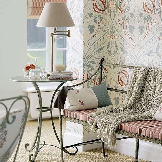 Description: Download Garden Room Corner With Patterned Wallpaper, Iron Bench And Table ... Desktop Background Desktop Background from the above display resolutions for iPhone, iPhone 3G, iPhone 3GS. If you want, you can download Original resolution which may fits perfect to your screen.