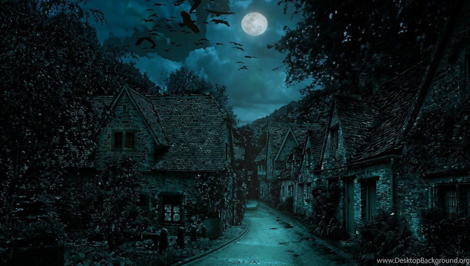 Houses: Nite Village Fantasy Dark Night Full HD 1080p Backgrounds ... Desktop Background