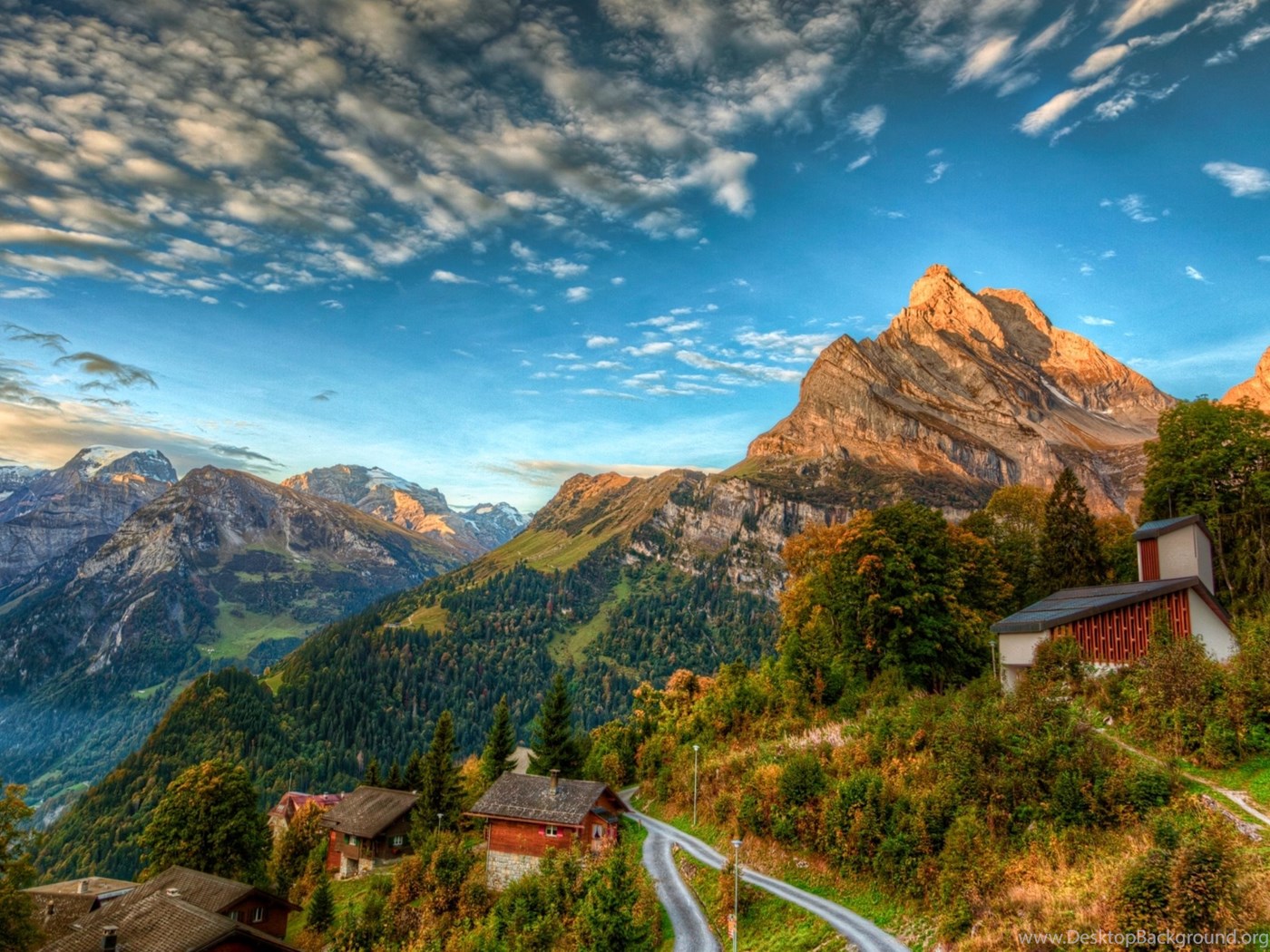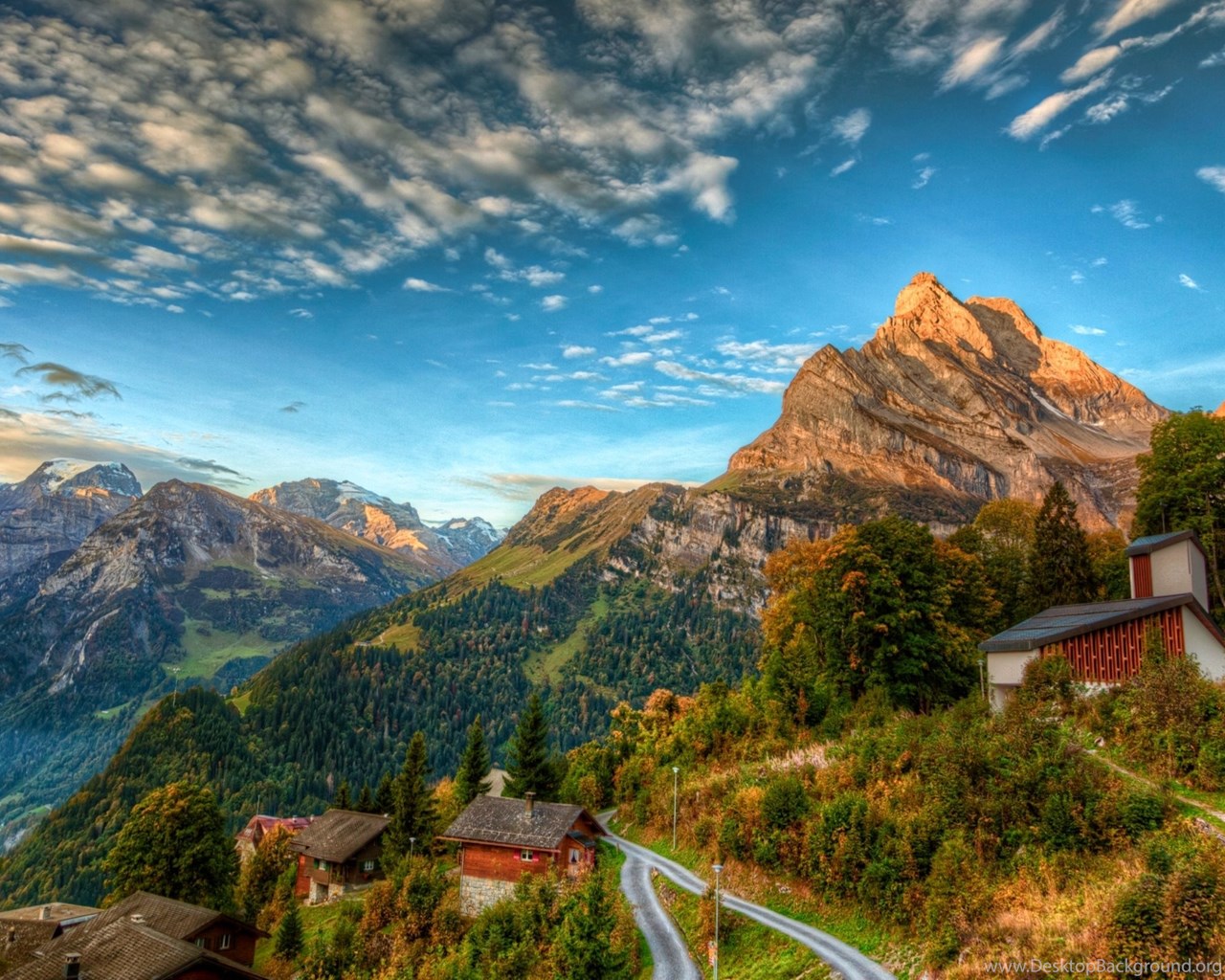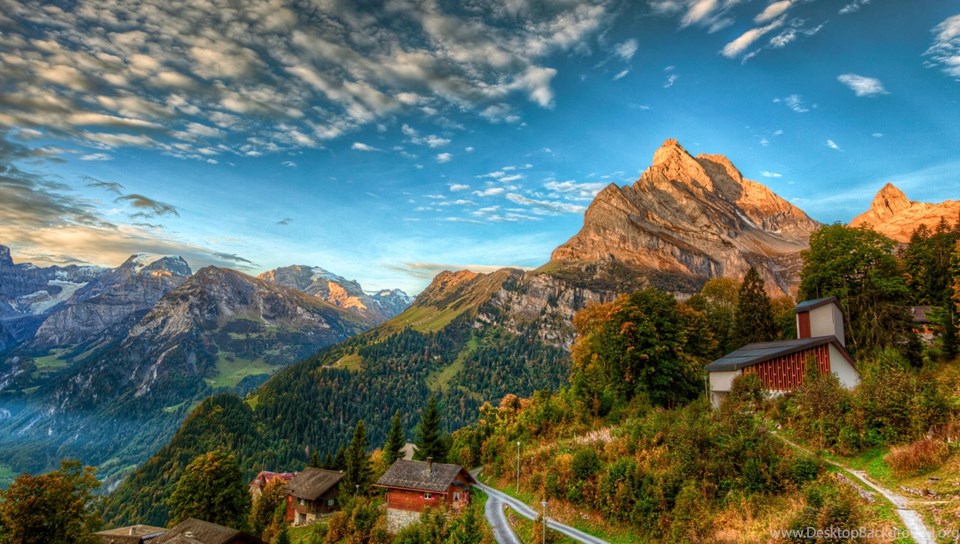 Houses On Swiss Alps 2560x1600 HD Wallpapers Desktop Background