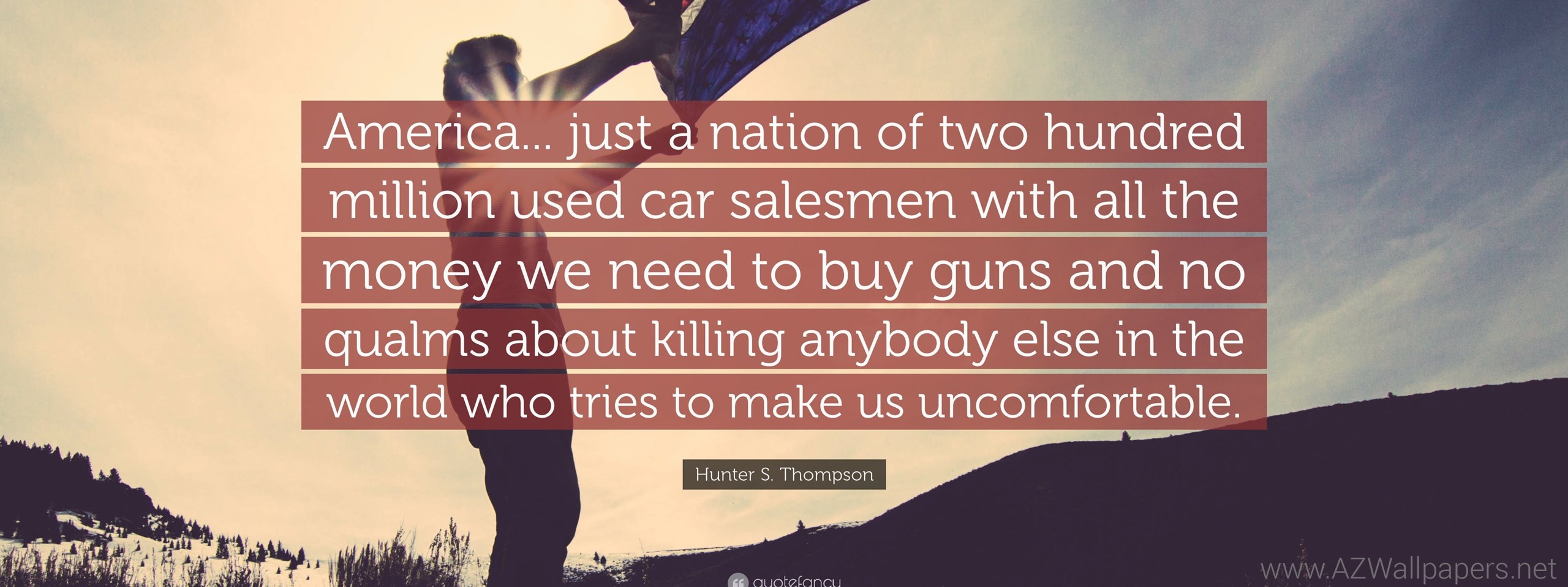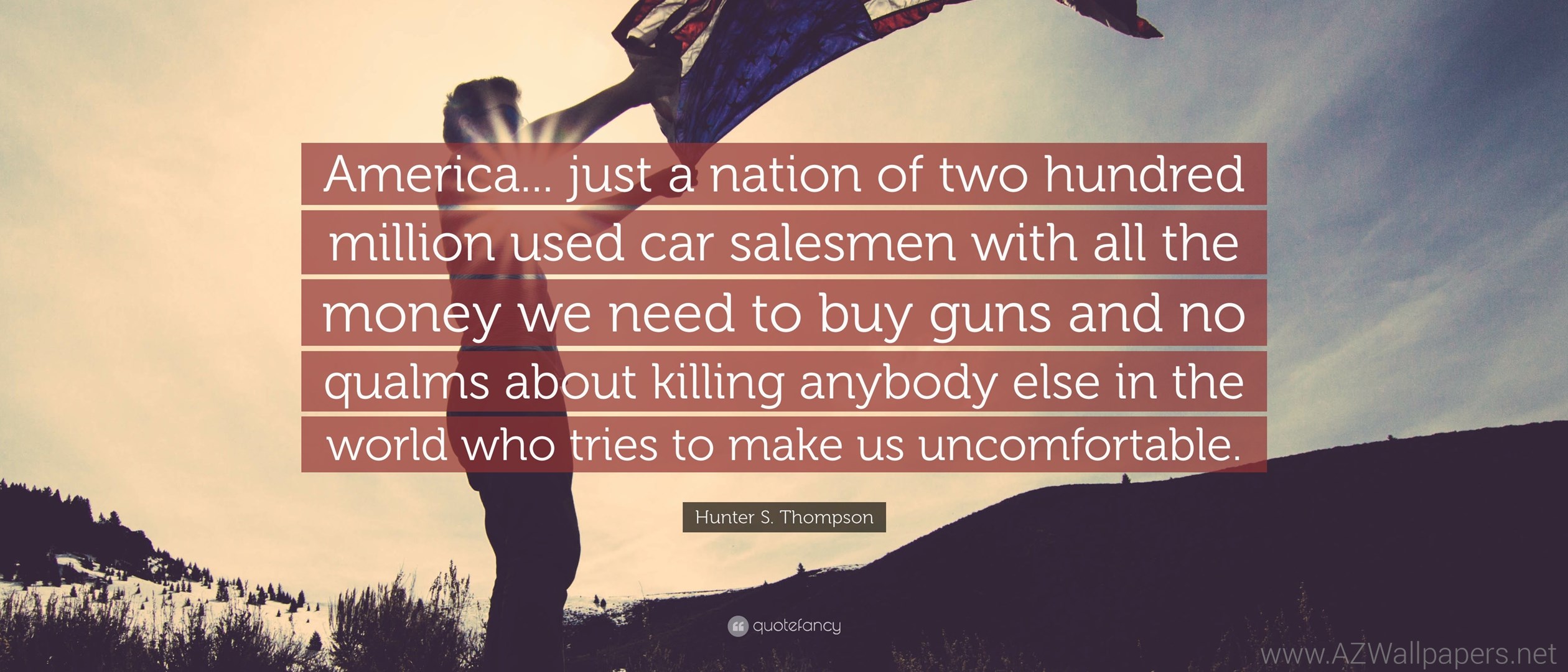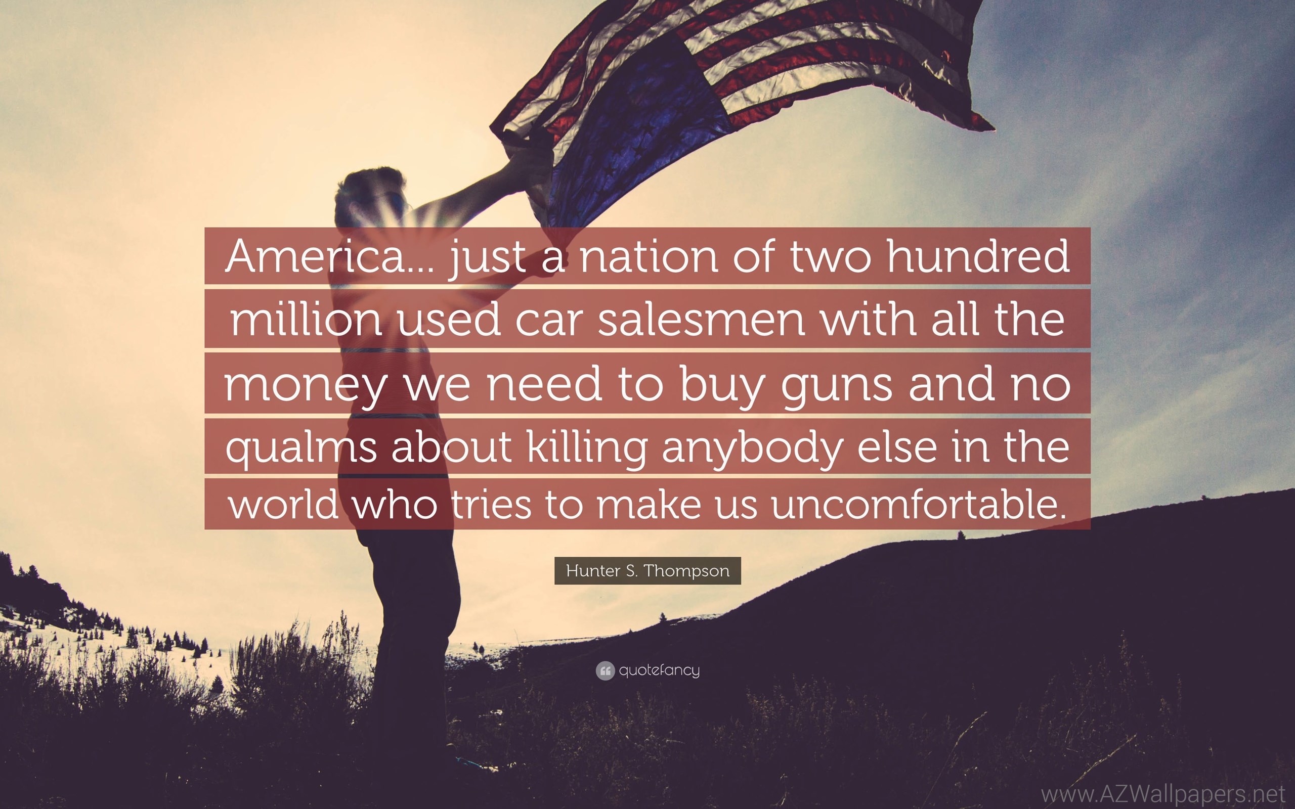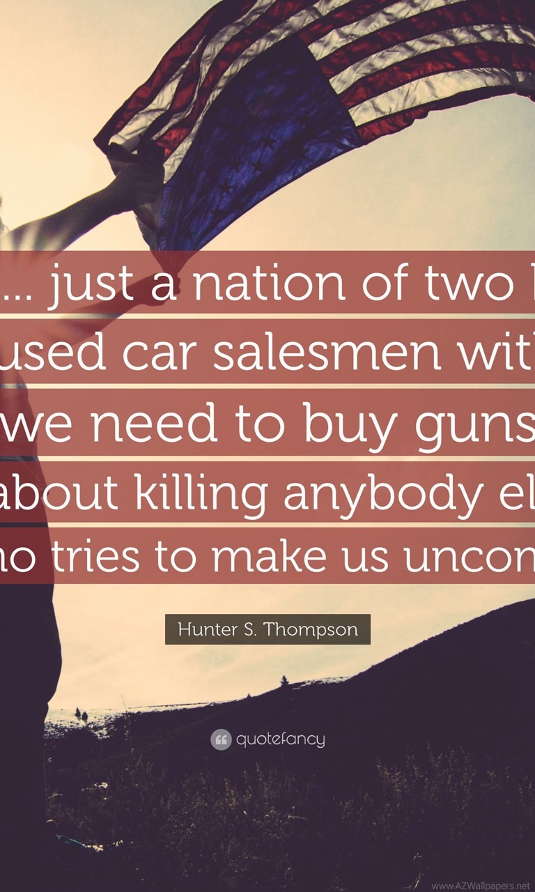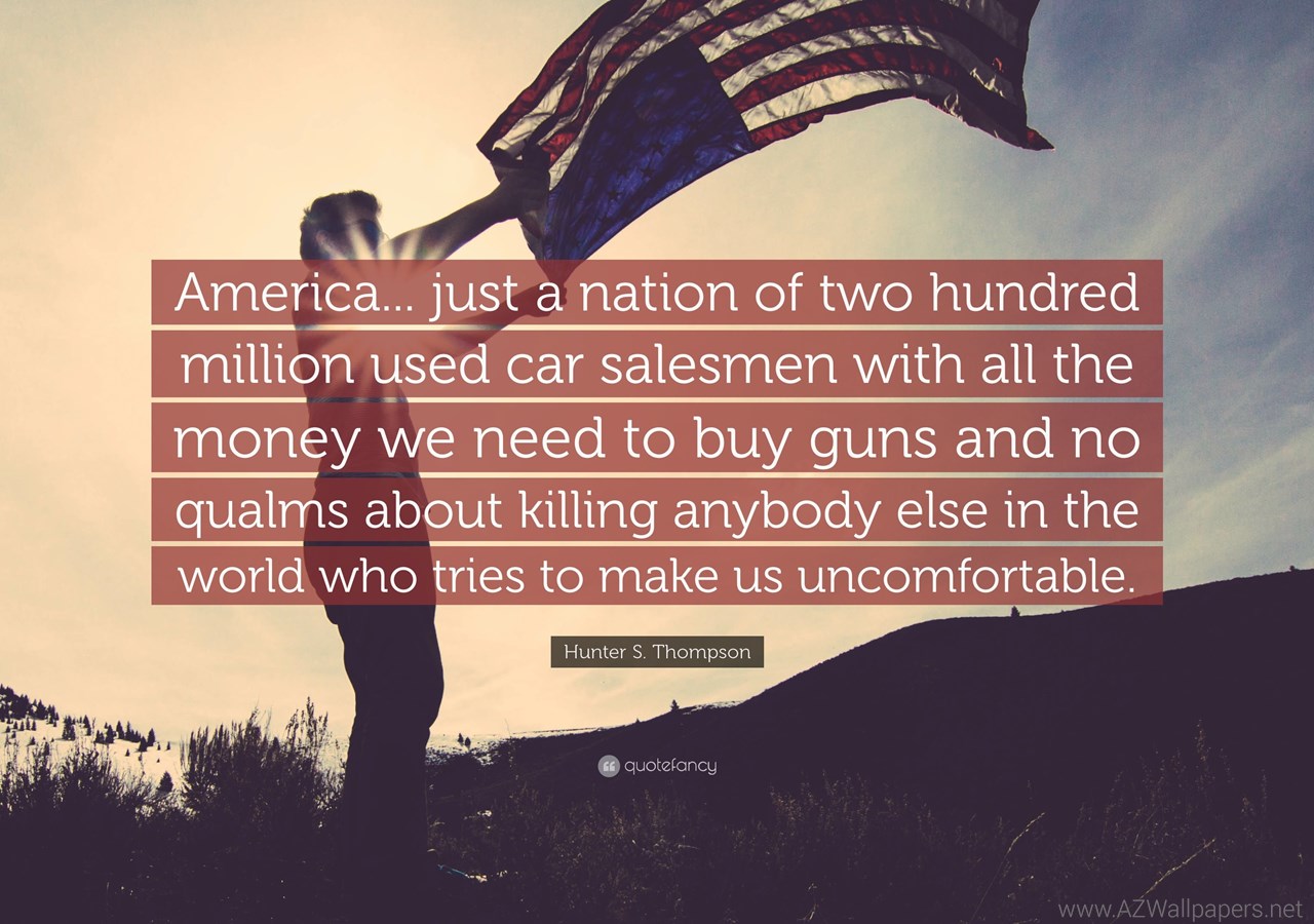 Description: Download Hunter S. Thompson Quote: “America... Just A Nation Of Two Hundred ... Desktop Background Desktop Background from the above display resolutions for Standart 4:3, Standart 5:4, 4K Ultra HD 16:9, Wide 21:9, Dual Screen Wide, Widescreen 16:10, Widescreen 16:9, Retina Widescreen, 4K, Sony Z5, Netbook, Tablet, Playbook, PlayStation, HD, Android HD , iPad 2017, iPad 2018, iPad Air, iPad Air 2, iPad 3, iPad 4, iPad mini 2, iPad mini 3, iPad, iPad 2, iPad mini, iPhone XR, iPhone 6 Plus, iPhone 6S Plus, iPhone 7 Plus, iPhone 8 Plus, iPhone 6, iPhone 6S, iPhone 7, iPhone 8, iPhone 5, iPhone 5S, iPhone 5C, iPod Touch 5, iPhone 4, iPhone 4S, iPod touch 4, iPhone, iPhone 3G, iPhone 3GS. If you want, you can download Original resolution which may fits perfect to your screen.