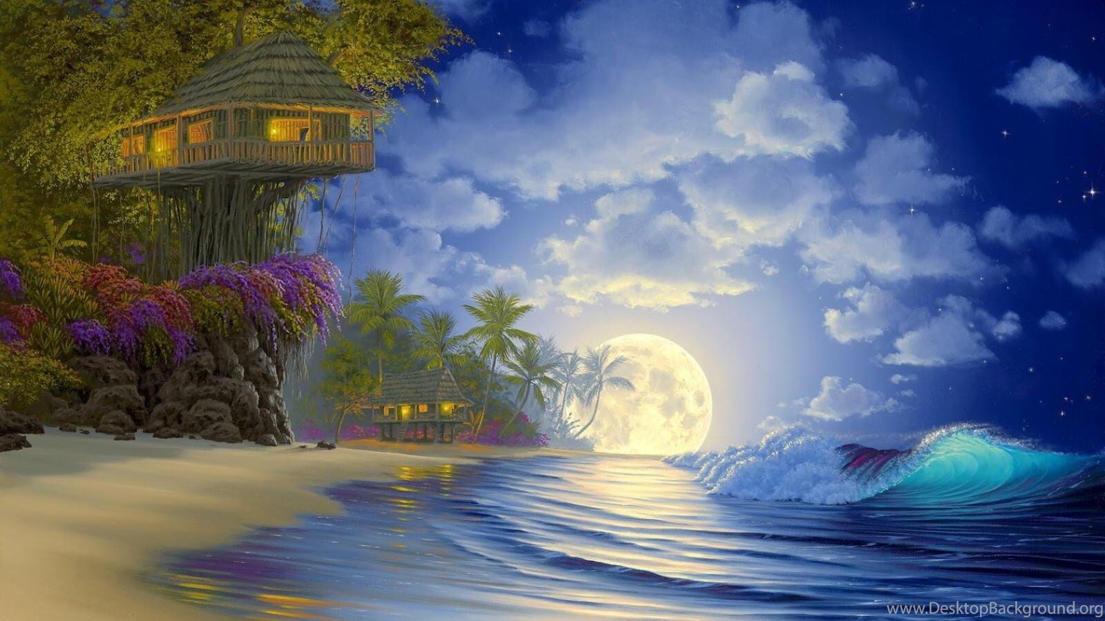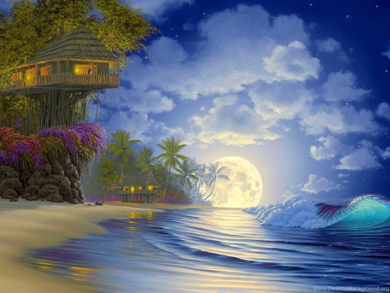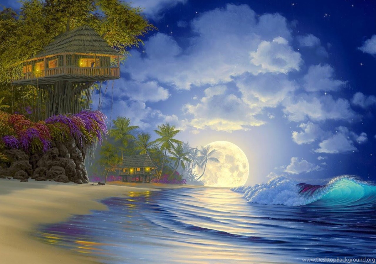 I Love Tree House: Full Moon Tree House Wallpapers 1680x1050 Desktop Background