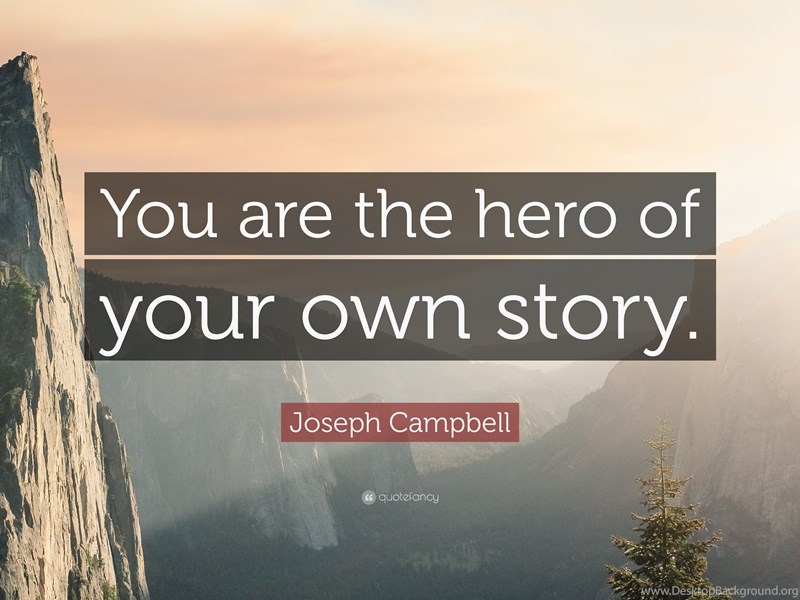 Description: Download Joseph Campbell Quote: “You Are The Hero Of Your Own Story.” (12 ... Desktop Background Desktop Background from the above display resolutions for Standart 4:3, Standart 5:4, 4K Ultra HD 16:9, Wide 21:9, Dual Screen Wide, Widescreen 16:10, Widescreen 16:9, Retina Widescreen, 4K, Sony Z5, Netbook, Tablet, Playbook, PlayStation, HD, Android HD , iPad 2017, iPad 2018, iPad Air, iPad Air 2, iPad 3, iPad 4, iPad mini 2, iPad mini 3, iPad, iPad 2, iPad mini, iPhone XR, iPhone 6 Plus, iPhone 6S Plus, iPhone 7 Plus, iPhone 8 Plus, iPhone 6, iPhone 6S, iPhone 7, iPhone 8, iPhone 5, iPhone 5S, iPhone 5C, iPod Touch 5, iPhone 4, iPhone 4S, iPod touch 4, iPhone, iPhone 3G, iPhone 3GS. If you want, you can download Original resolution which may fits perfect to your screen.
