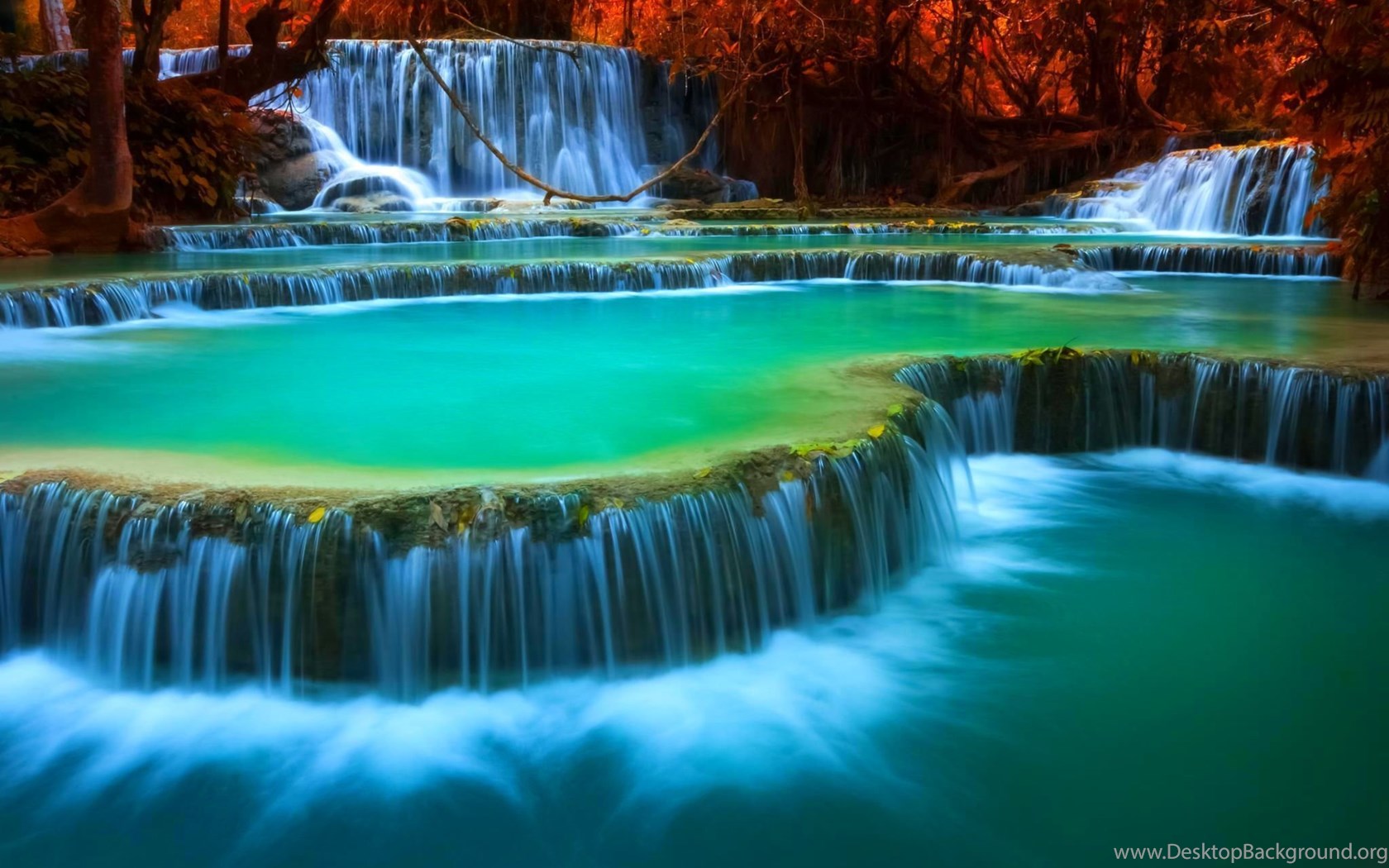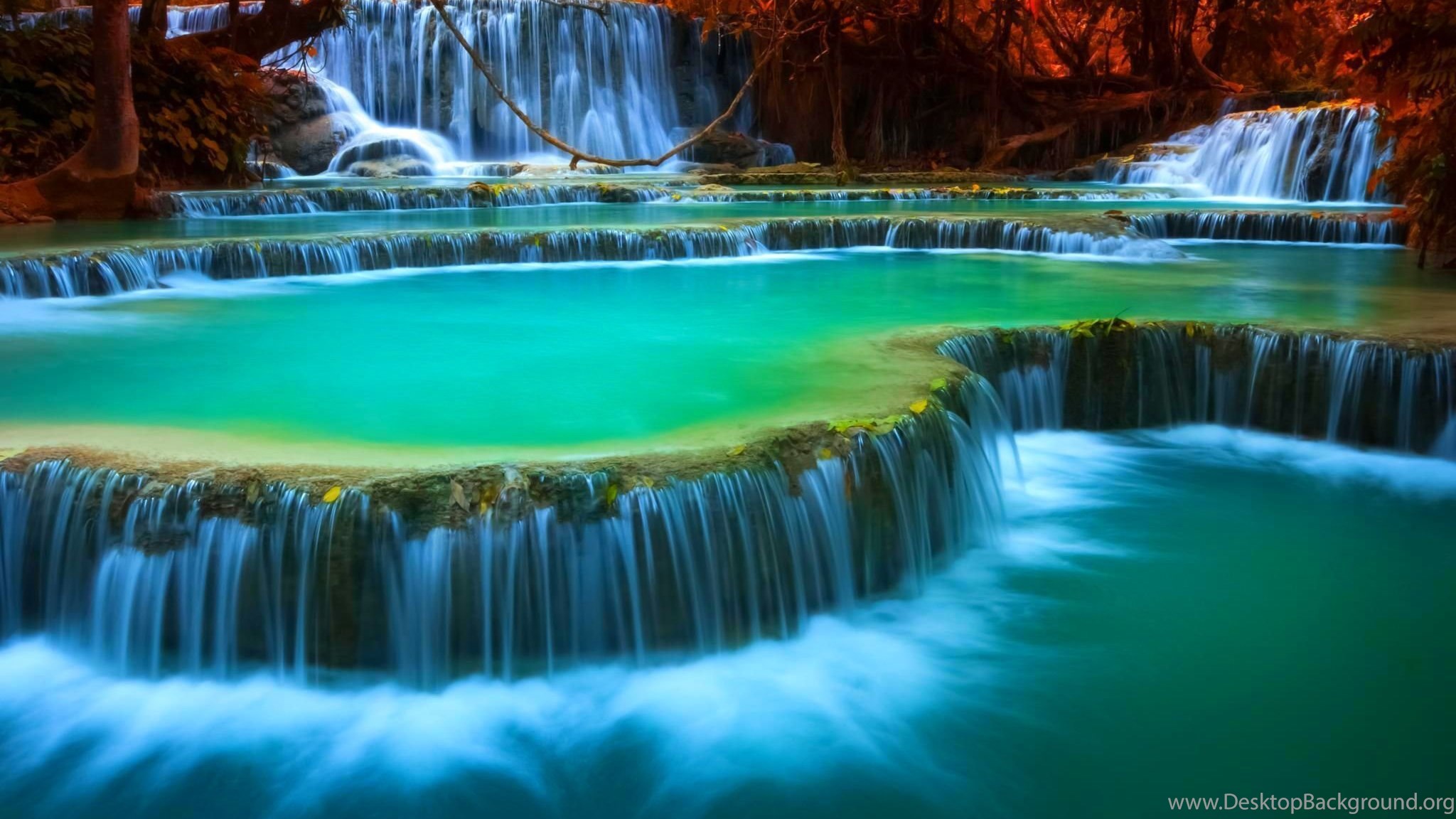 Kouangxi Falls Laos Waterfalls Four Levels Desktop Background