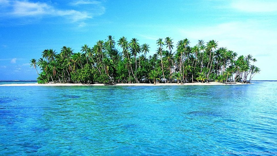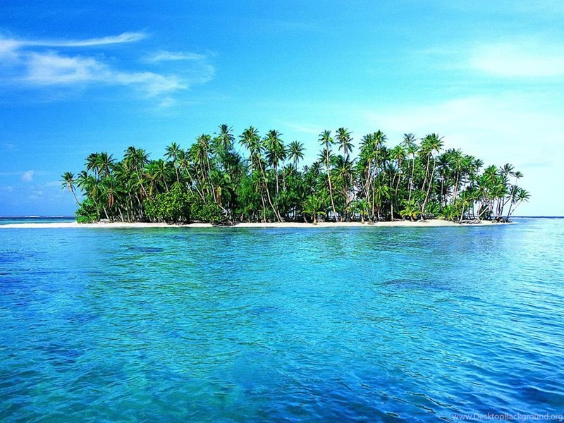 Lonely Island With White Sand And Green Tropic Palms Wallpapers ... Desktop Background