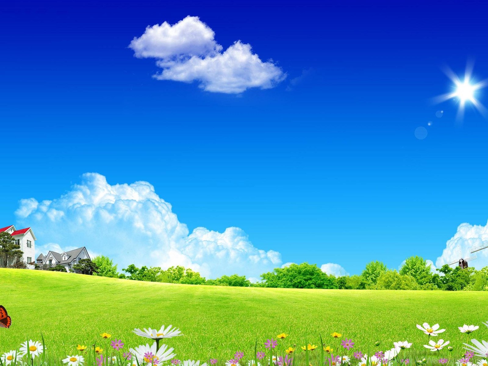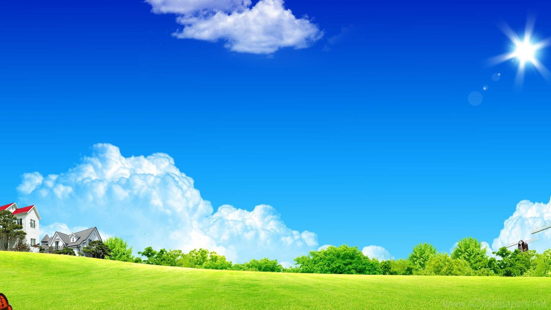 Meadow Cloud House Art Digital Meadow By The City Sun Sky City HD ... Desktop Background