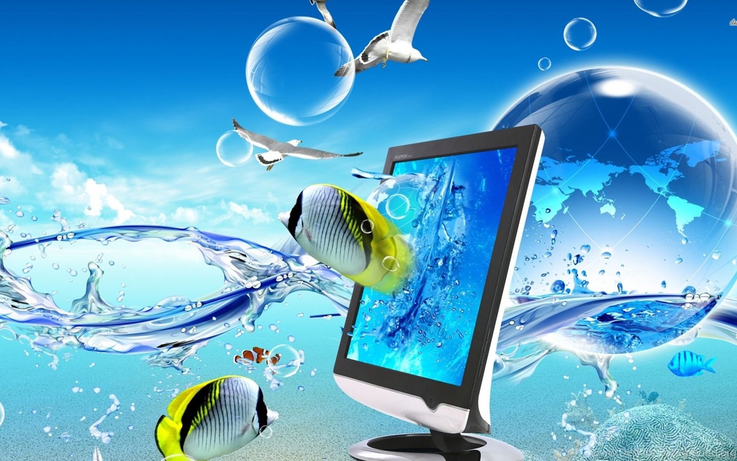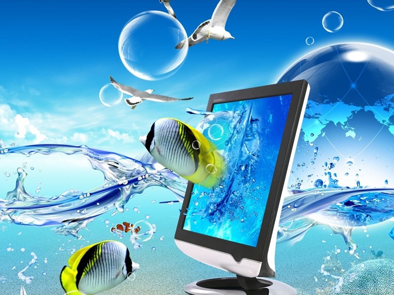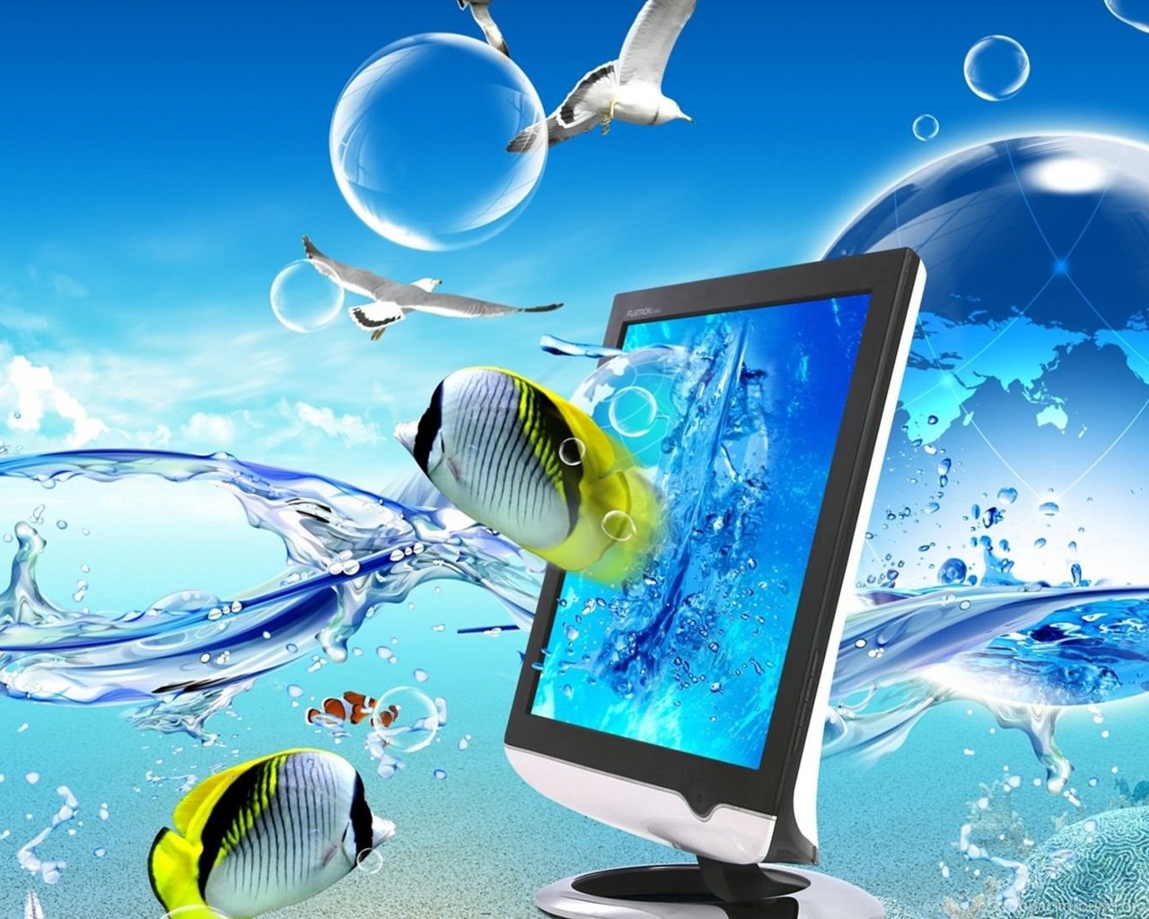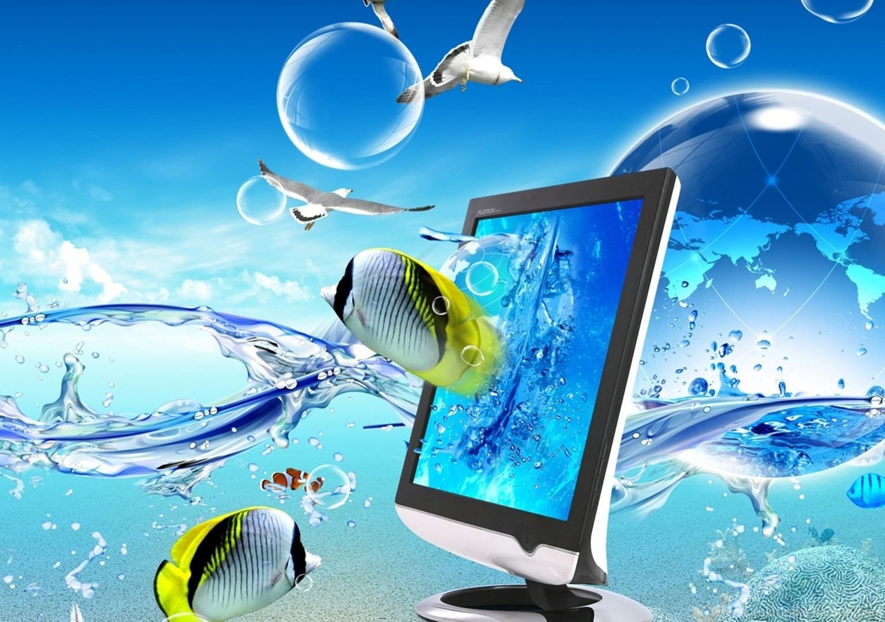 Monitor In Water Wallpapers Desktop Background