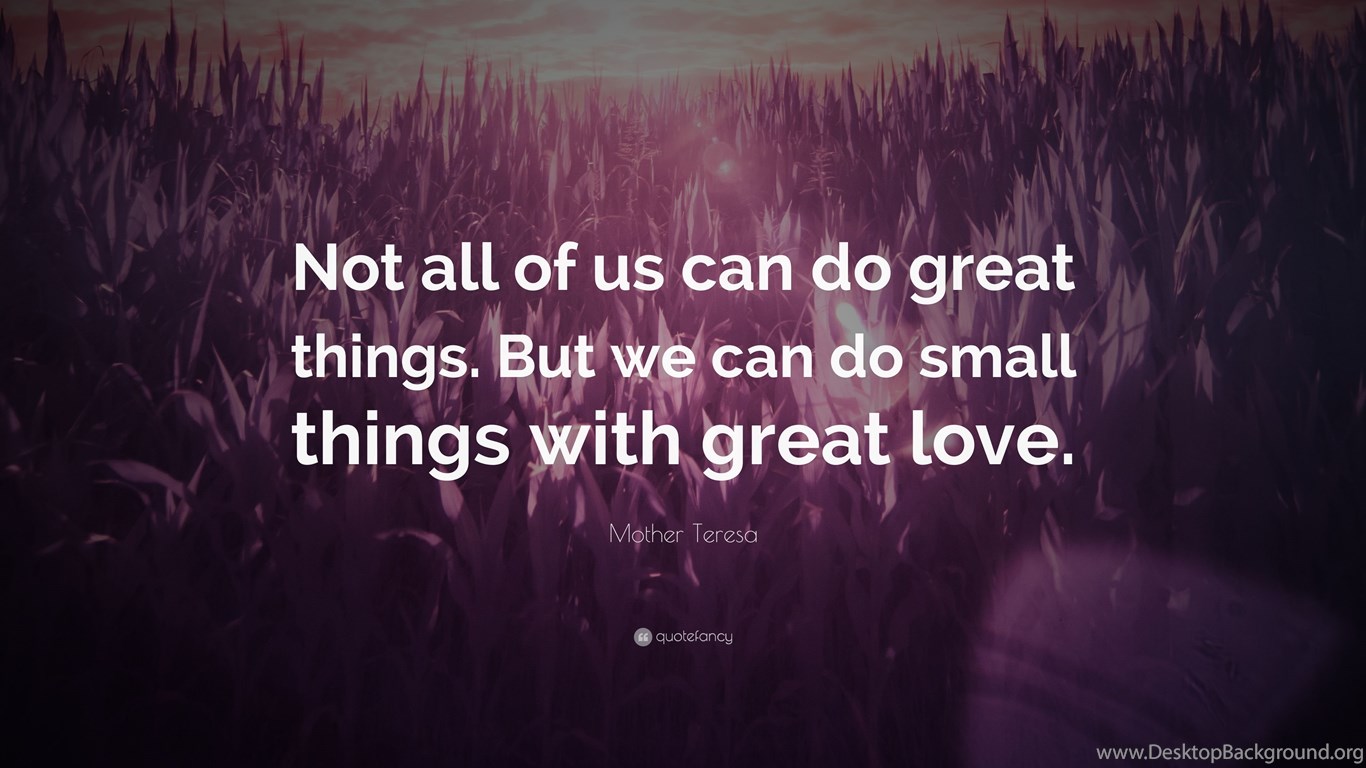 Description: Download Mother Teresa Quote: “Not All Of Us Can Do Great Things. But We ... Desktop Background Desktop Background from the above display resolutions for Standart 4:3, Standart 5:4, 4K Ultra HD 16:9, Wide 21:9, Dual Screen Wide, Widescreen 16:10, Widescreen 16:9, Retina Widescreen, 4K, Sony Z5, Netbook, Tablet, Playbook, PlayStation, HD, Android HD , iPad 2017, iPad 2018, iPad Air, iPad Air 2, iPad 3, iPad 4, iPad mini 2, iPad mini 3, iPad, iPad 2, iPad mini, iPhone XR, iPhone 6 Plus, iPhone 6S Plus, iPhone 7 Plus, iPhone 8 Plus, iPhone 6, iPhone 6S, iPhone 7, iPhone 8, iPhone 5, iPhone 5S, iPhone 5C, iPod Touch 5, iPhone 4, iPhone 4S, iPod touch 4, iPhone, iPhone 3G, iPhone 3GS. If you want, you can download Original resolution which may fits perfect to your screen.