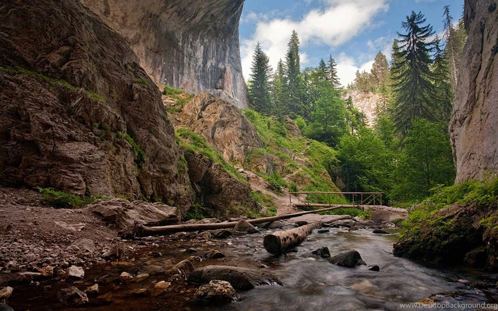 Mountain And River Scenes With Bridges Desktop Background