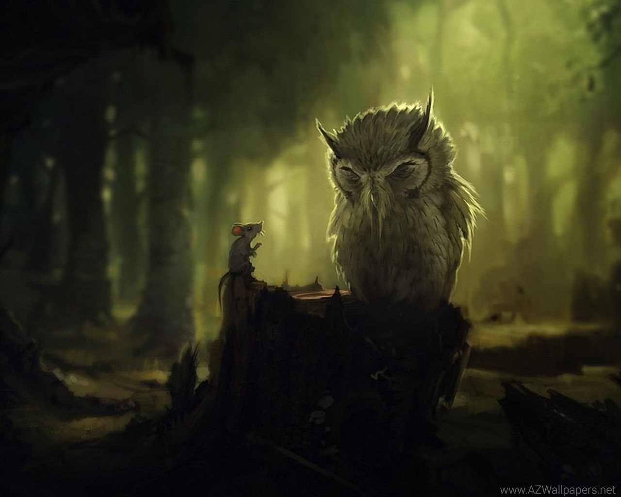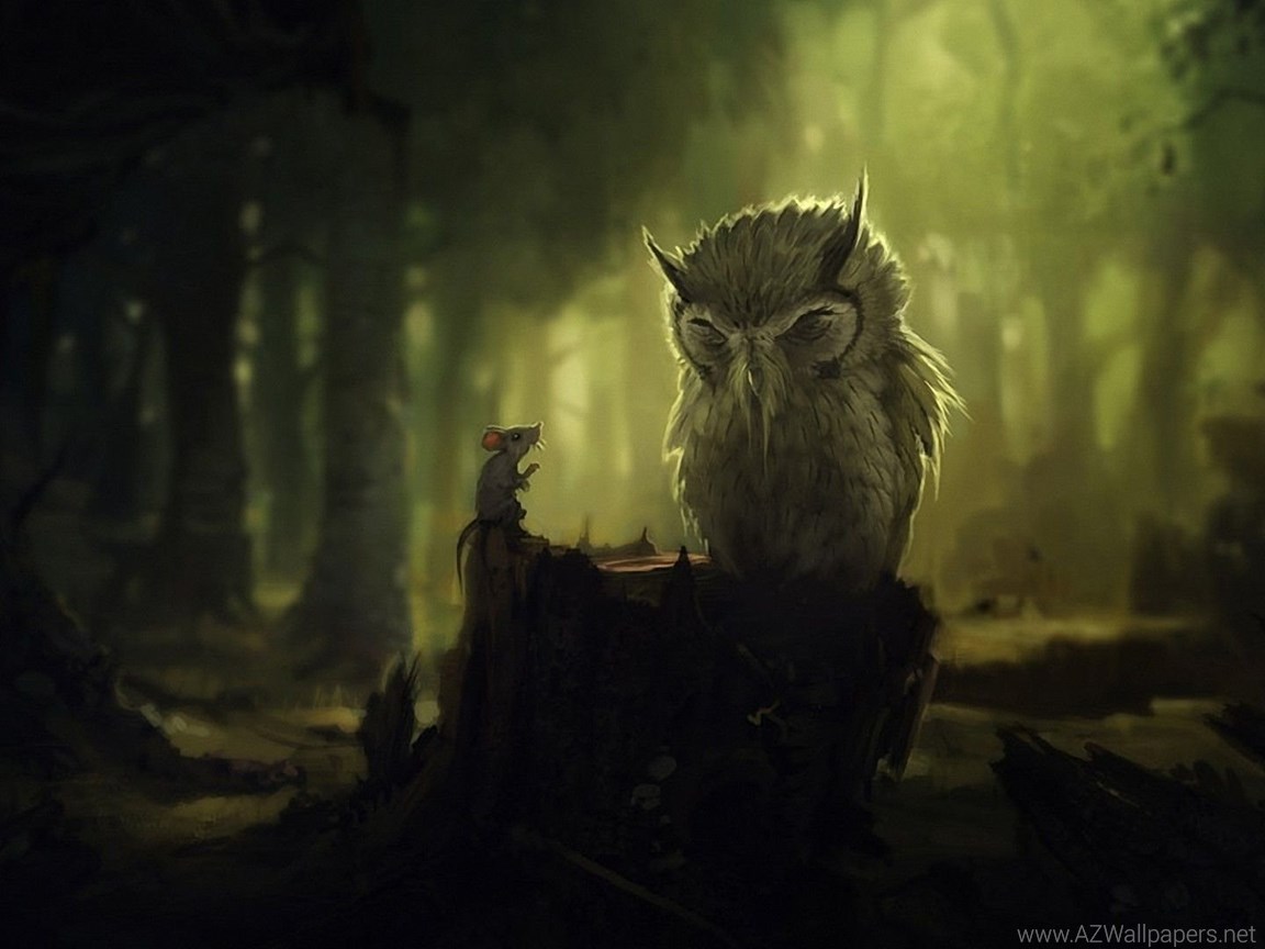 Mouse and owl in the dark forest artistic hd wallpaper 1920×1080 ... Desktop Background